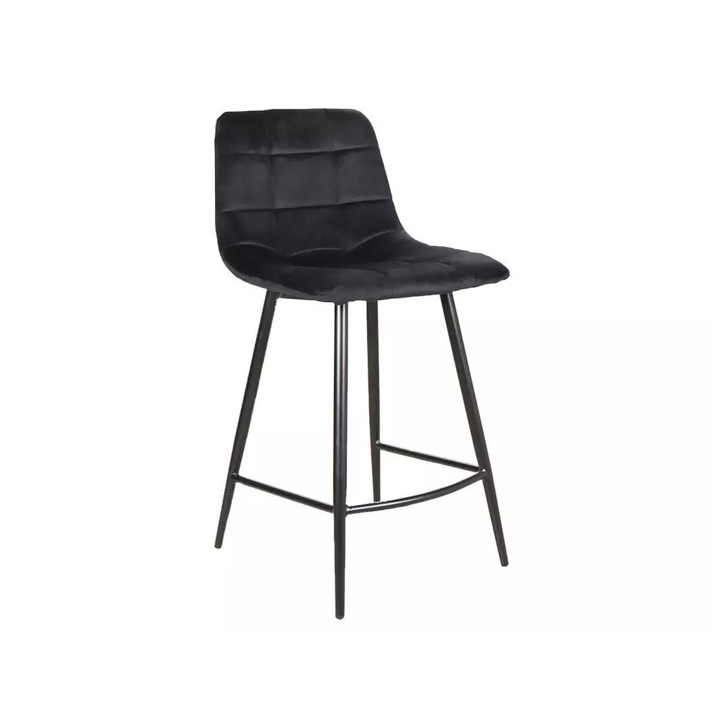 Moderní barová židle MILA H-2 Velvet v nadčasovém černém provedení. Čalouněný podsedák v kombinaci s černými kovovými nohami činí z barové židle elegantní a vzhledný kus nábytku.