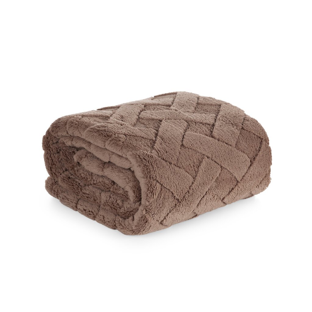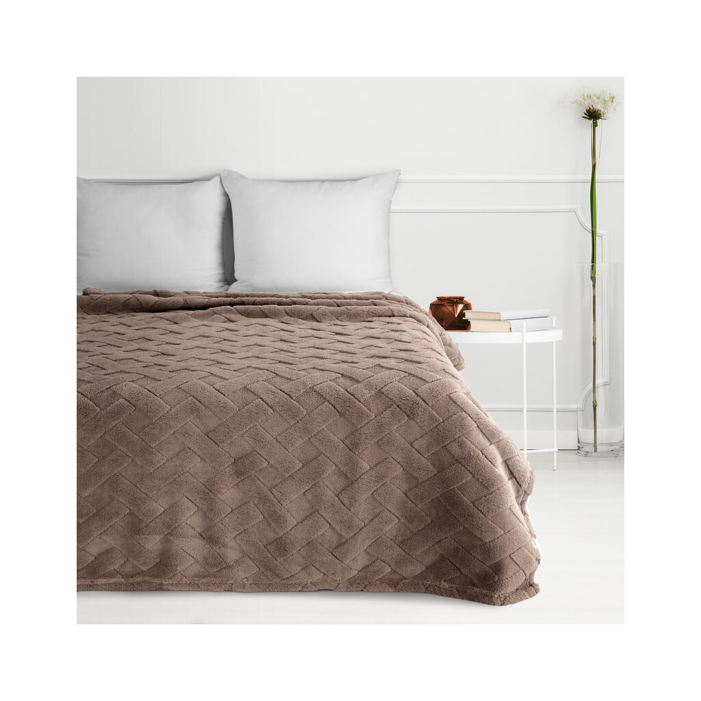 Klasická deka z vlákna příjemného na dotek v technologii mikroflanel. Jednobarevná nadýchaná struktura je zdobena minimalistickým reliéfem rybí kosti. šířka: 150 cm, délka: 200 cm, barva: tmavě béžová, hmotnost: 340 GSM, složení: Materiál: 100% polyester