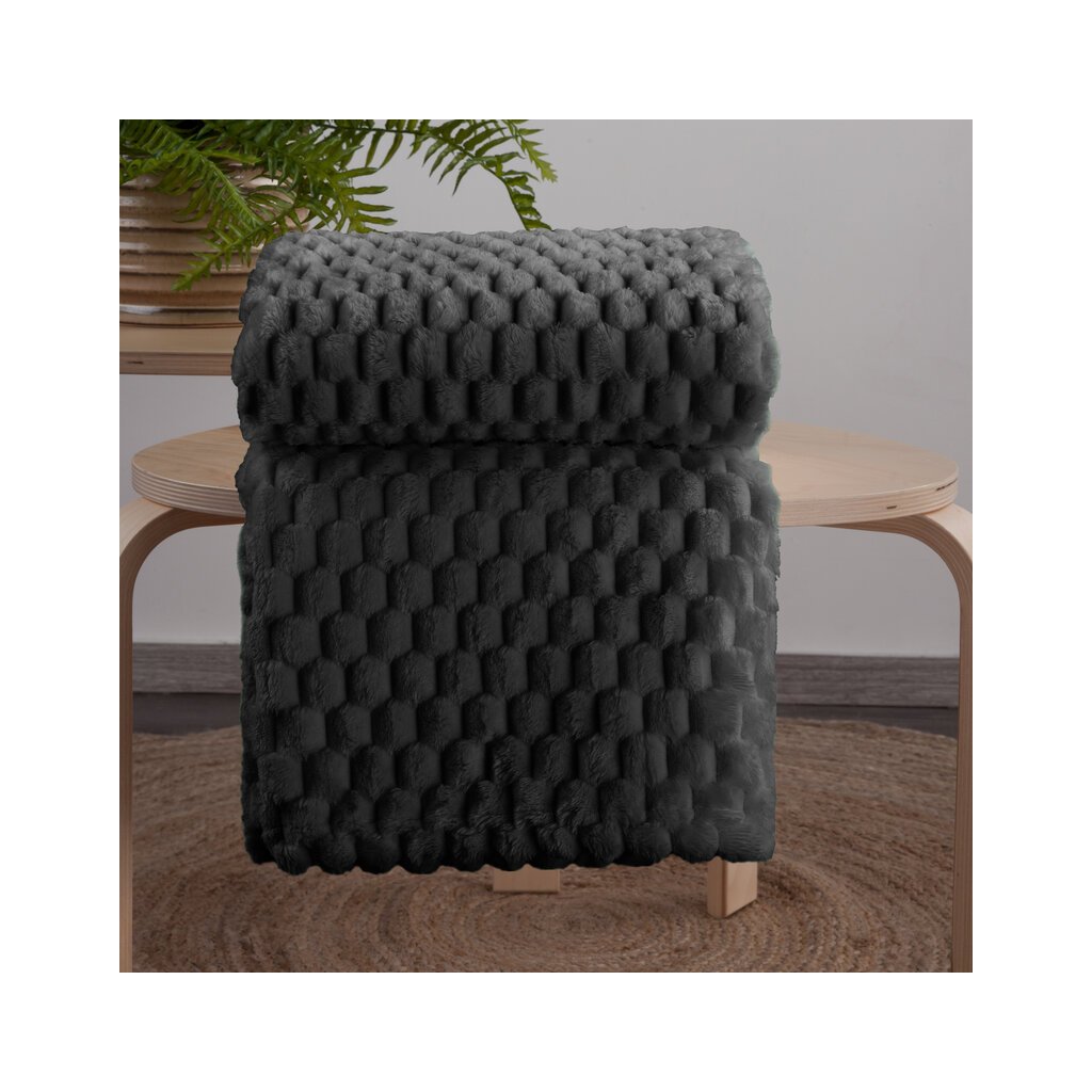 Klasická deka z vlákna příjemného na dotek v technologii mikroflanel. Jednobarevná nadýchaná struktura je zdobena minimalistickým reliéfem ve tvaru rybí kosti. šířka: 170 cm, délka: 210 cm, barva: černá, gramáž: 260GSM GSM, složení: Materiál: 100% polyester