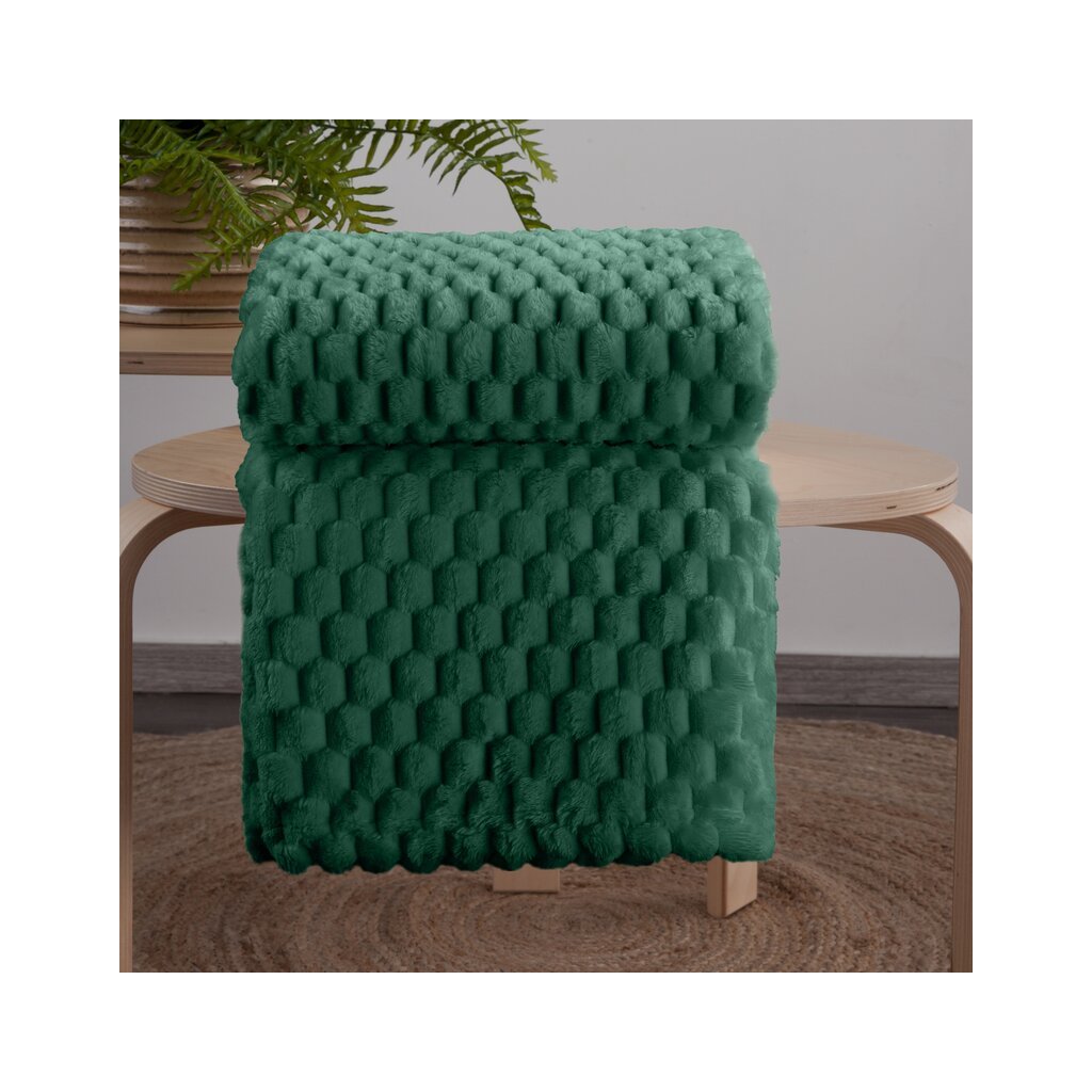 Flano deka velmi měkká na dotek s 3d efektem šířka: 170 cm, délka: 210 cm, barva: tmavě zelená, hmotnost: 260GSM GSM, složení: Materiál: 100% polyester