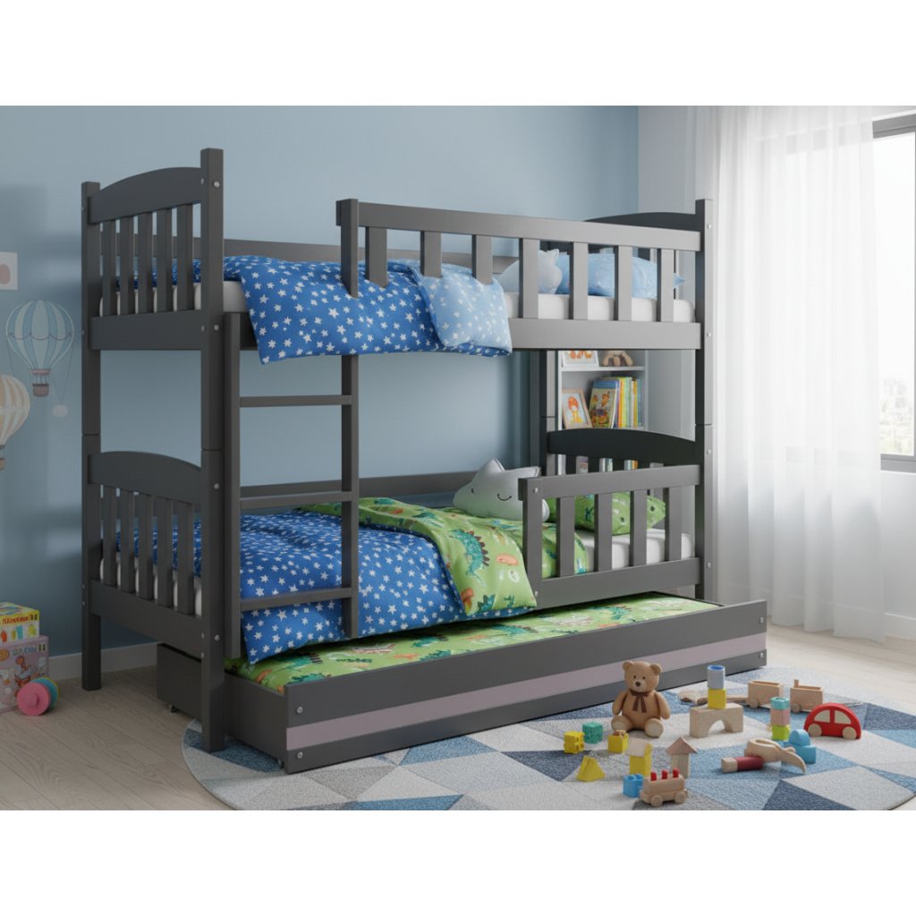 Dětská patrová postel KUBUŠ | šedá 90 x 200 cm