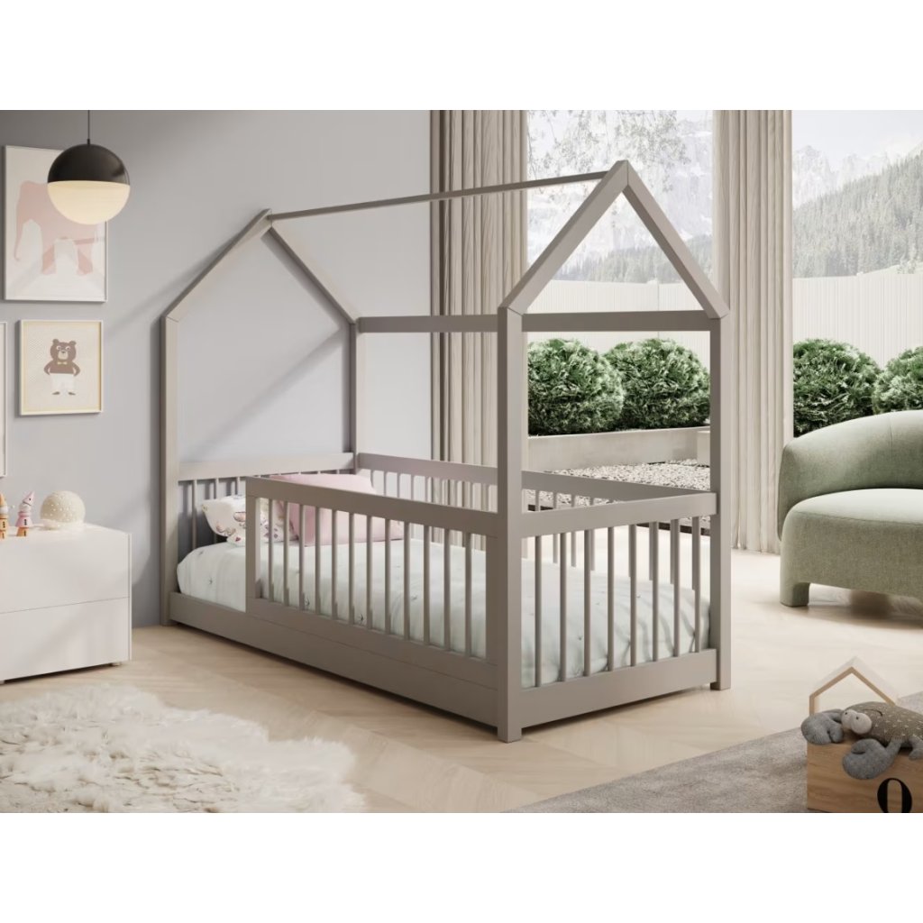 Dětská postel domeček GRAJA v šedé barvě s plochou na spaní 80 x 180 cm je ideální volbou pro dětský pokoj. Díky svému hravému designu ve tvaru domečku vytváří příjemné a bezpečné prostředí pro spánek i každodenní hry. Postel podporuje dětskou fantazii a zároveň nabízí stabilní a pevnou konstrukci o nosnosti až 110 kg. Je vhodná pro malé děti ale i starší děti a skvěle zapadne do moderních i klasických interiérů . Součástí postele je rošt. Matraci je třeba doobjednat .