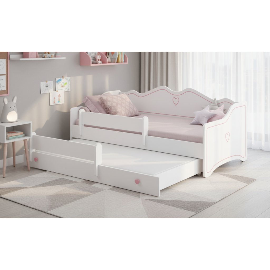 Dětská postel s přistýlkou EMKA II | bílá/růžová 80 x 160 cm