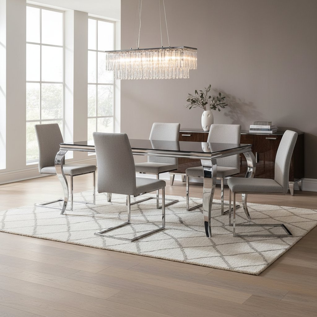 Luxusní jídelní stůl PRINCE je charakteristický svým netradičním designem s chromovýma nohama a moderním provedením. Díky nadčasovému nádechu, elegantnímu vzhledu a kvalitním materiálům je jídelní stůl PRINCE tou vhodnou volbou do každé moderní domácnosti. Spolu se židlí PRINCE Velvet si zařídíte jídelnu snů.
