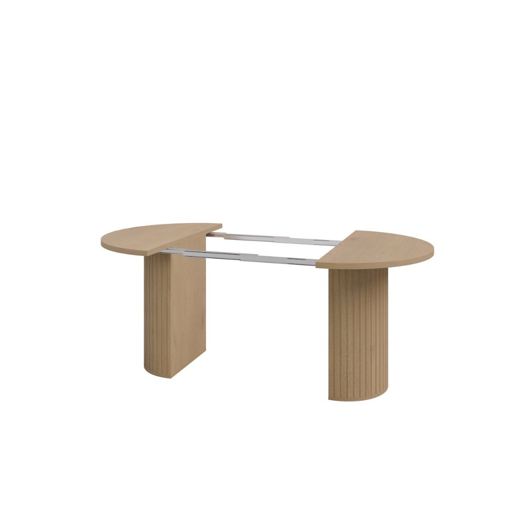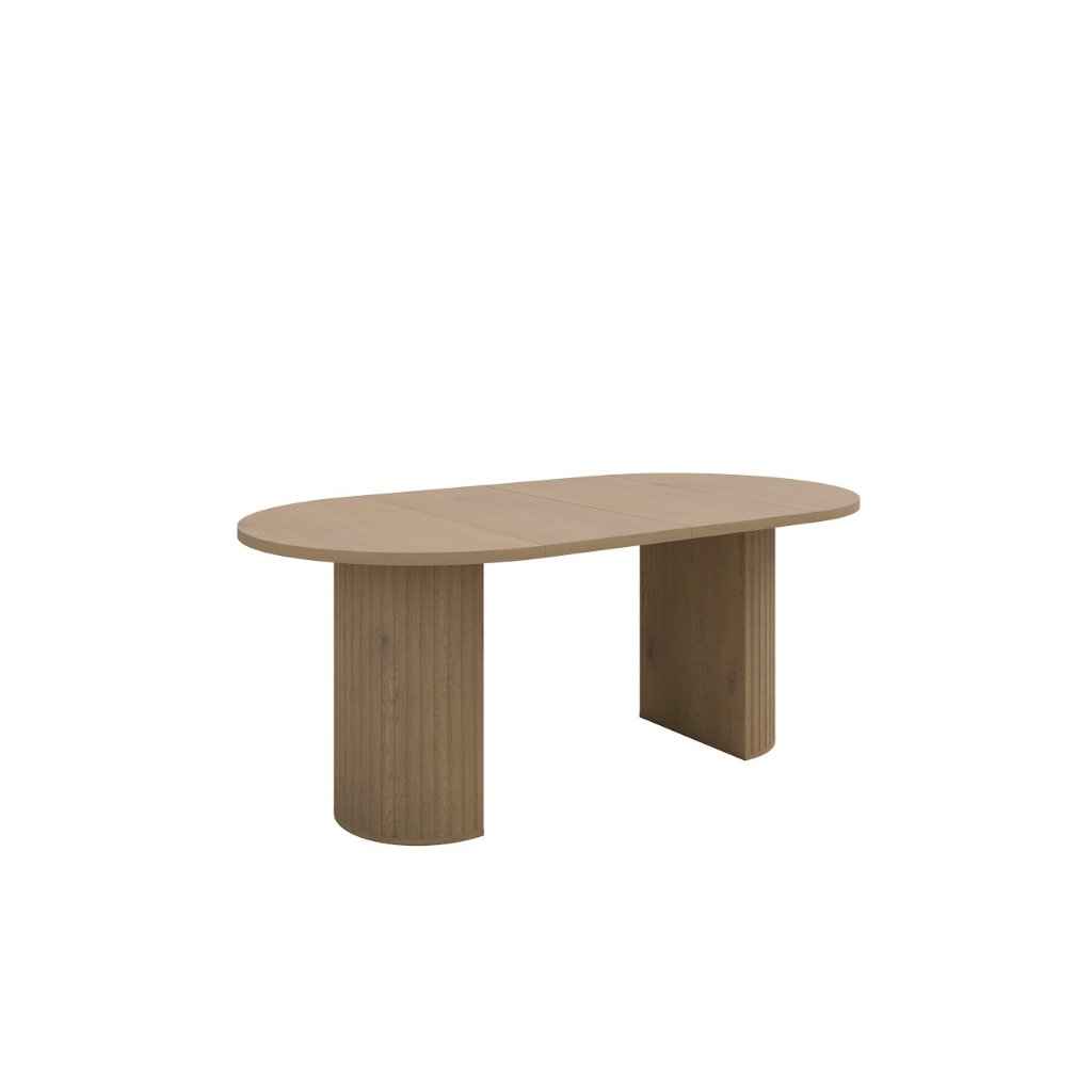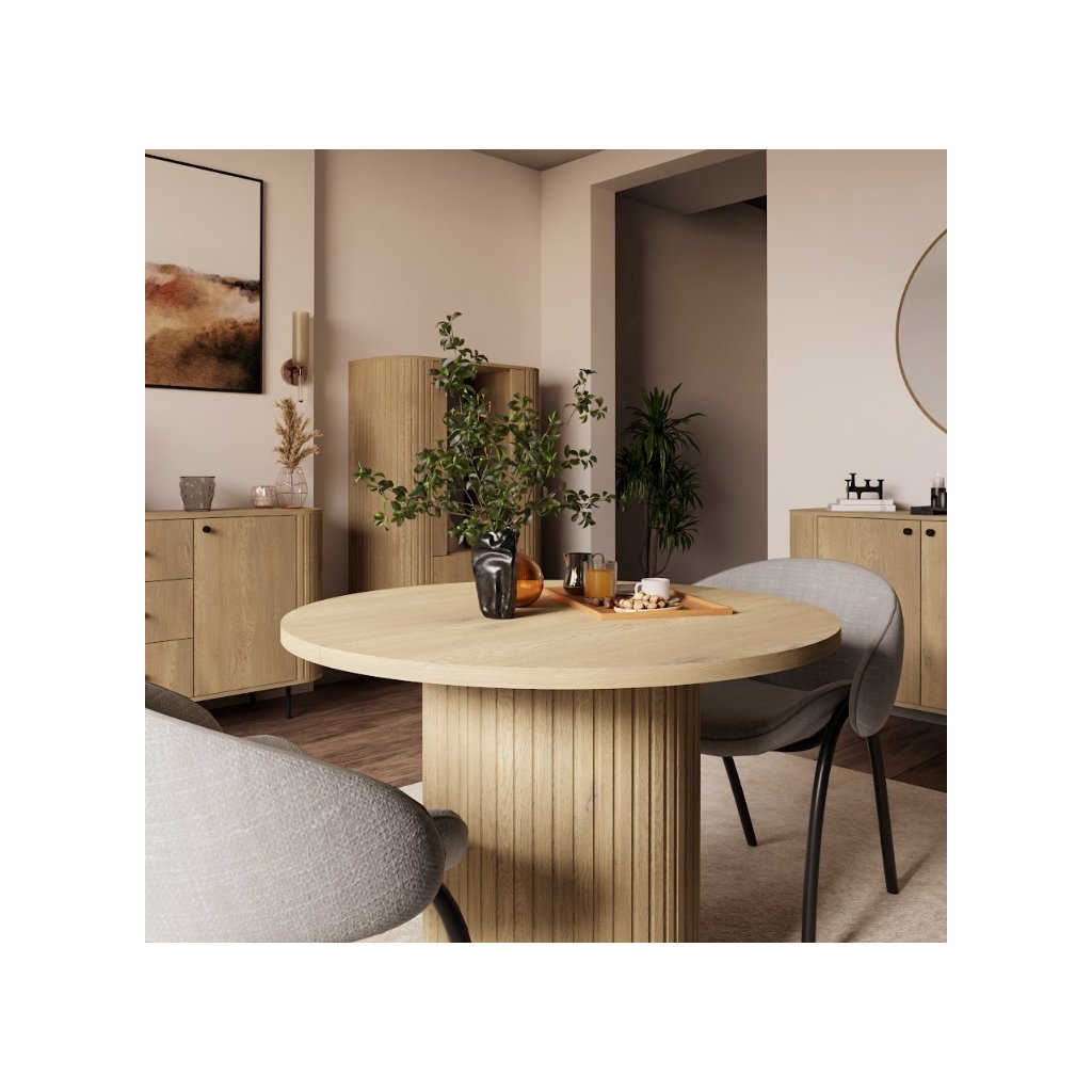 Kolekce VAOLIA představuje minimalistický styl, který oživují precizně frézované detaily a originální zaoblené boky , které vnášejí do interiéru nový rozměr elegance. Barevné provedení se nese v tlumených, zemitějších odstínech , jako je dub cremona, které decentně narušují světlé tóny. Jídelní stůl VAOLIA je v kulatém provedení po rozložení je v oválném provedení. Jídelní stůl má možnost rozkladu až na 188 cm.
