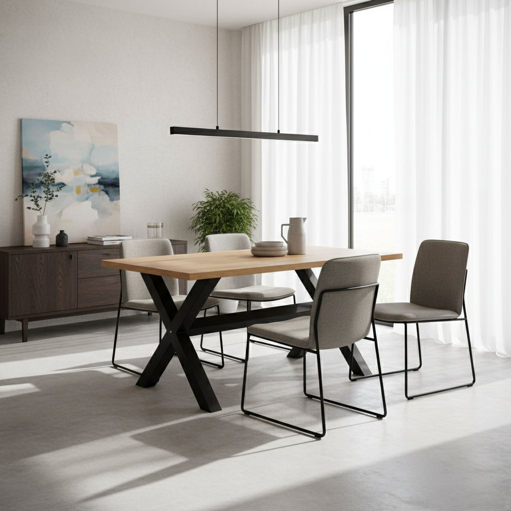 Atraktivní jídelní stůl Xaviero je vyroben z kvalitního a odolného dubového dřeva, které zaručuje dlouhou životnost. Kovová podnož přidává stolu celkový šmrnc a atraktivní design. Stůl lze zakoupit ve dvou praktických rozměrech, které jsou ideální do každé jídelny či kuchyně. Jídelní stůl Xaviero nelze rozložit.
