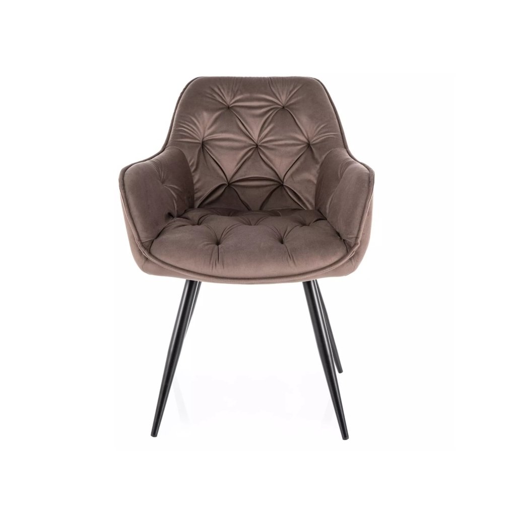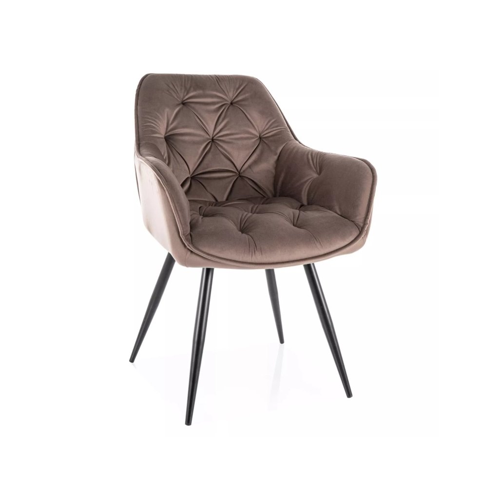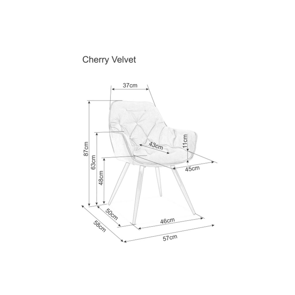 Dokonalá jídelní židle CHERRY VELVET vykouzlí kousek elegance ve vaší jídelně nebo pracovně. Díky prošívanému opěradlu a rukojetím budete mít zaručeno dokonalé sezení a relax. Nohy židle jsou kovové v dokonalé černé barvě. Výborně se hodí do každého moderního interiéru . Max.nosnost židle je 120 kg.