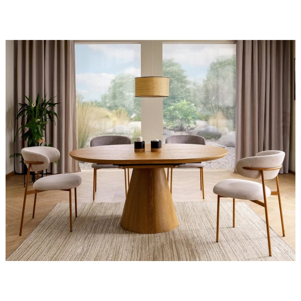 Židle stojí na krásných kovových nožičkách v odstínu dubu, které dodávají stabilitu a pevnost. Na čalounění je použita kvalitní látka, odolná vůči oděru, žmolkování a také je příjemná na dotek . Látku doporučujeme ošetřovat přípravky k tomu určenými.