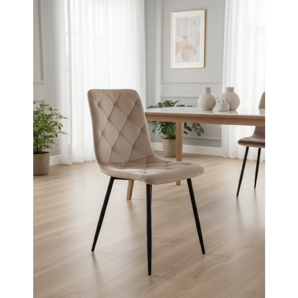 Čalouněná jídelní židle JERRY VELVET představuje perfektní kombinaci stylu a pohodlí, která může přeměnit každou jídelnu na luxusní a útulný prostor. Jídelní židle JERRY VELVET se jednoduše čistí, což z ní činí praktickou volbu pro každodenní používání. a opěrce, nohy židle jsou kovové v černé barvě.
