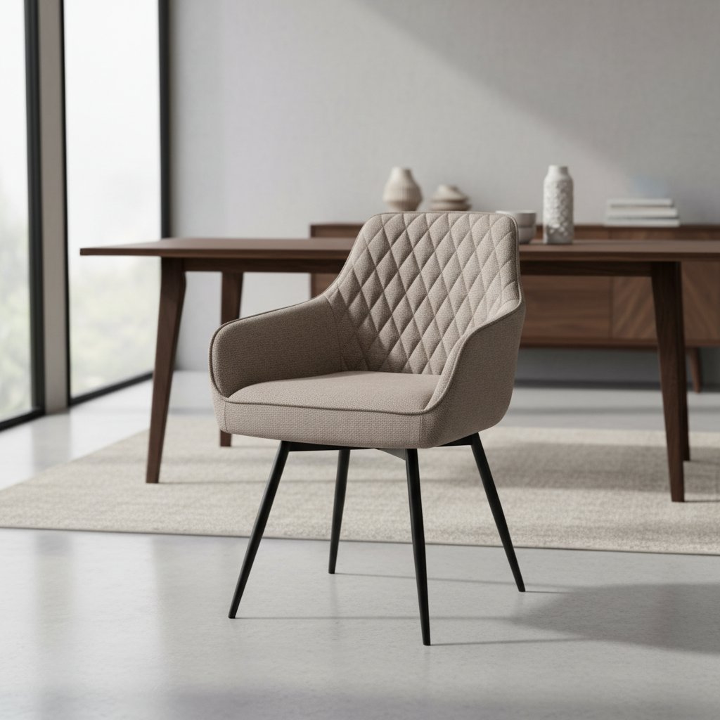 Skvělá jídelní židle MARLO BREGO vykouzlí kousek elegance ve vaší jídelně nebo pracovně. Díky prošívanému opěradlu a pohodlným područkám budete mít zaručeno dokonalé sezení a relax. Sezení je extrémně pohodlné díky taštičkovým pružinám v sedáku. Velkou výhodou je také funkce Auto-return, což je sedátko otočné o 180 stupňů, s funkcí návratu do původní polohy. Nohy židle jsou kovové v elegantní černé barvě. Výborně se hodí do každého moderního interiéru .