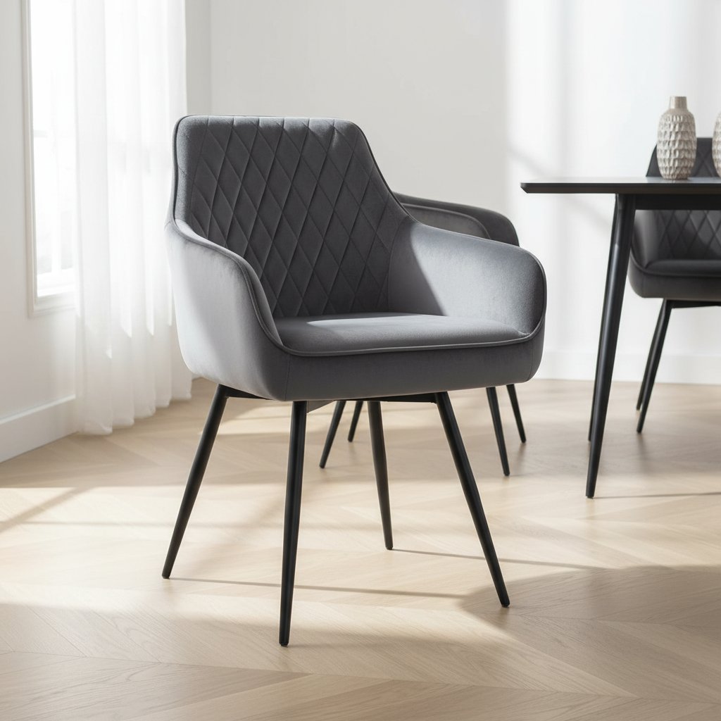 Skvělá jídelní židle MARLO VELVET vykouzlí kousek elegance ve vaší jídelně nebo pracovně. Díky prošívanému opěradlu a pohodlným područkám budete mít zaručeno dokonalé sezení a relax. Sezení je extrémně pohodlné díky taštičkovým pružinám v sedáku. Velkou výhodou je také funkce Auto-return, což je sedátko otočné o 180 stupňů, s funkcí návratu do původní polohy. Nohy židle jsou kovové v elegantní černé barvě. Výborně se hodí do každého moderního interiéru .