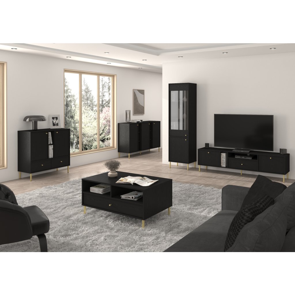 Krásné zlaté kovové úchyty, dokonalé linie, atraktivní a moderní design, to a mnohem víc je typickým znakem komody YEDDO 3F/černá. Komoda stojí na praktických vysokých kovových zlatých nožičkách, které zaručují robotickým vysavačům dostat se do každého koutu. Komoda je také vyrobena z kvalitního a odolného materiálu s ABS hranami, díky čemuž je praktickou volbou do každé domácnosti.