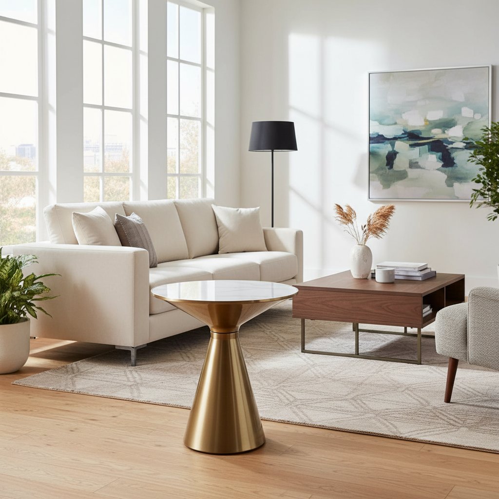 Vkusný konferenční stolek ARIES přináší skvělou kombinaci moderního designu a kvalitních materiálů . Stolek má pevnou kovovou nohou v nádherné zlaté barvě, tento stolek přidává dotek luxusu do každého interiéru. Kulatá keramická deska s dekorem bílého mramoru dodává stolku exkluzivní a stylový vzhled . Díky možnosti využití i příruční stolek nabízí více možností k využití v každém domě, kanceláři či luxusních podnicích. Dodává se v demontu, což usnadňuje jeho přepravu a montáž.