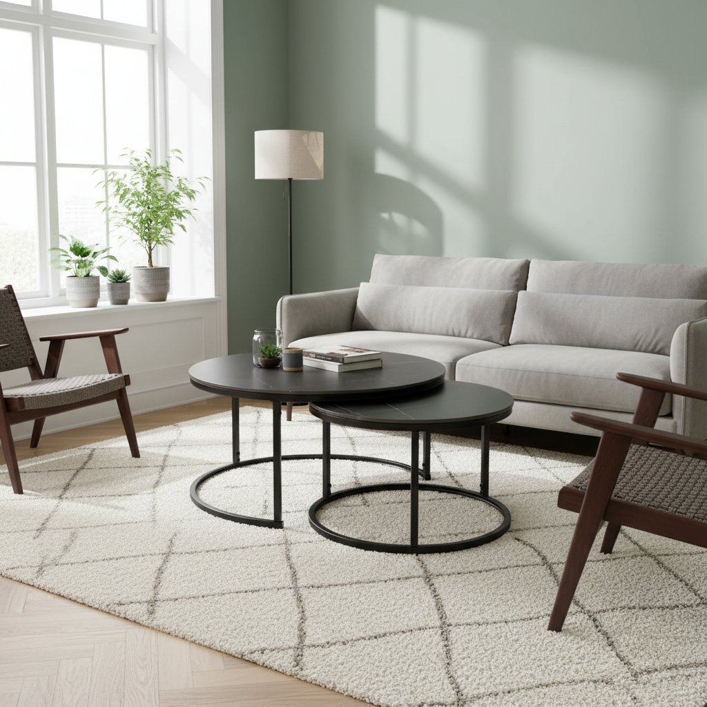 Sada konferenčních stolků stojí na kvalitní kovové podstavě, která představuje modernost a také dodává celkovou stabilitu a pevnost. Materiál ze kterého je sada vyrobena je kvalitní, odolný vůči poškození a snadno udržovatelný.