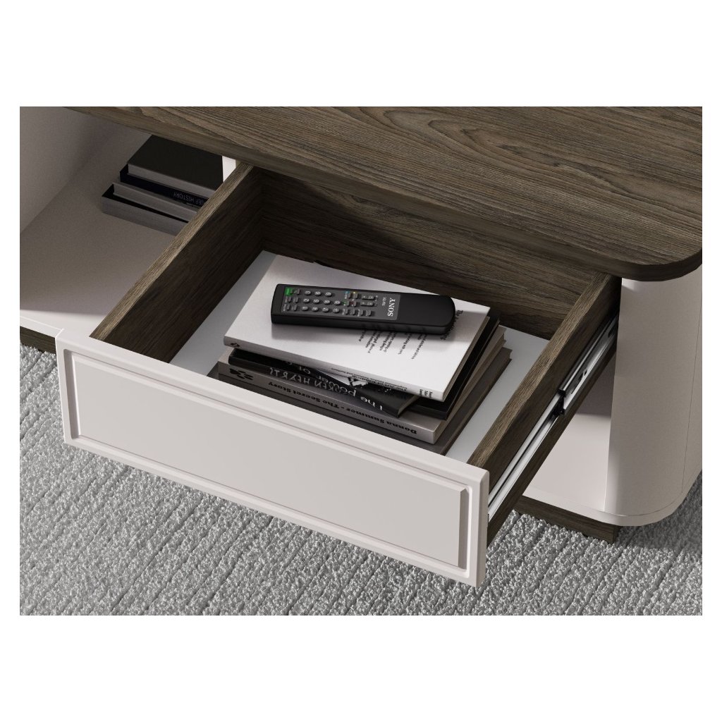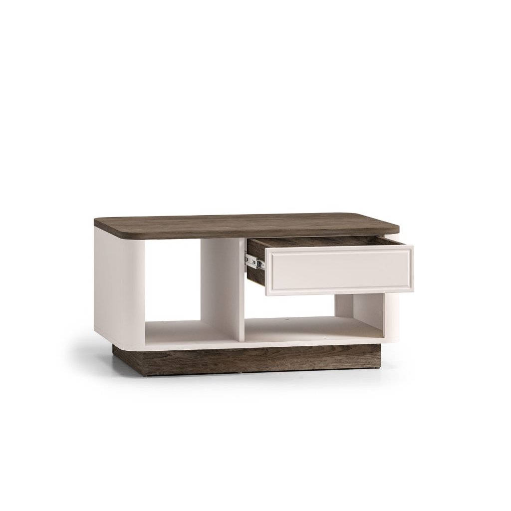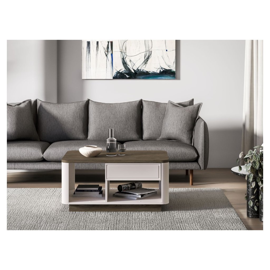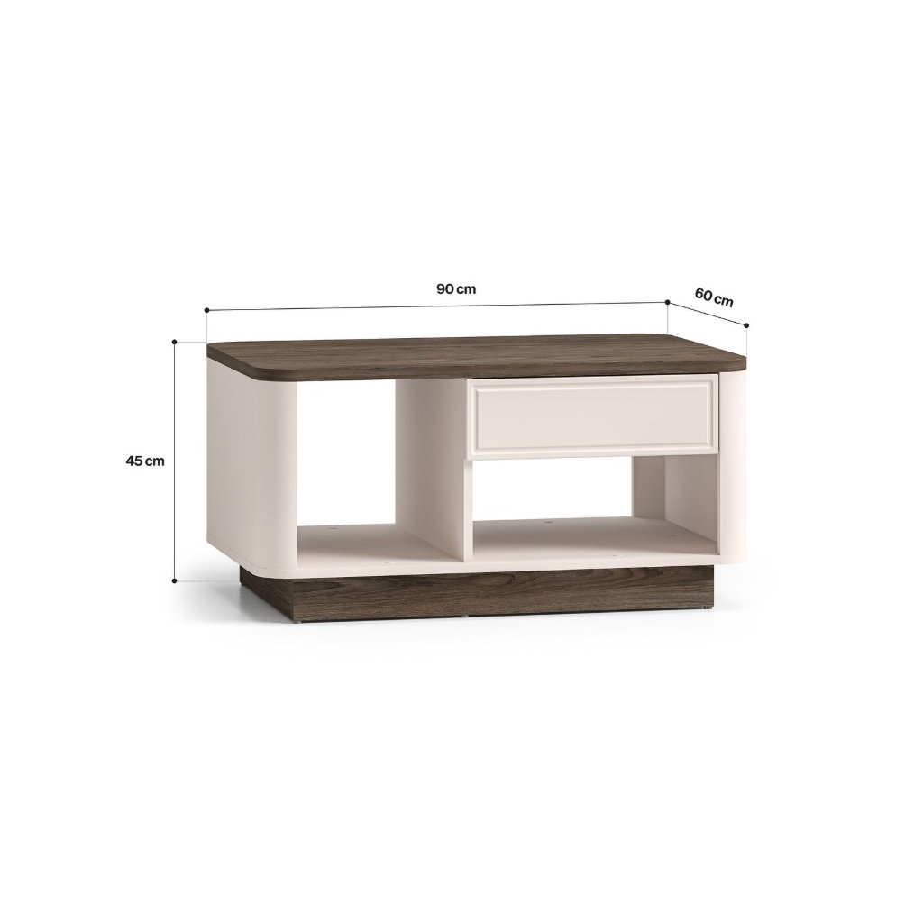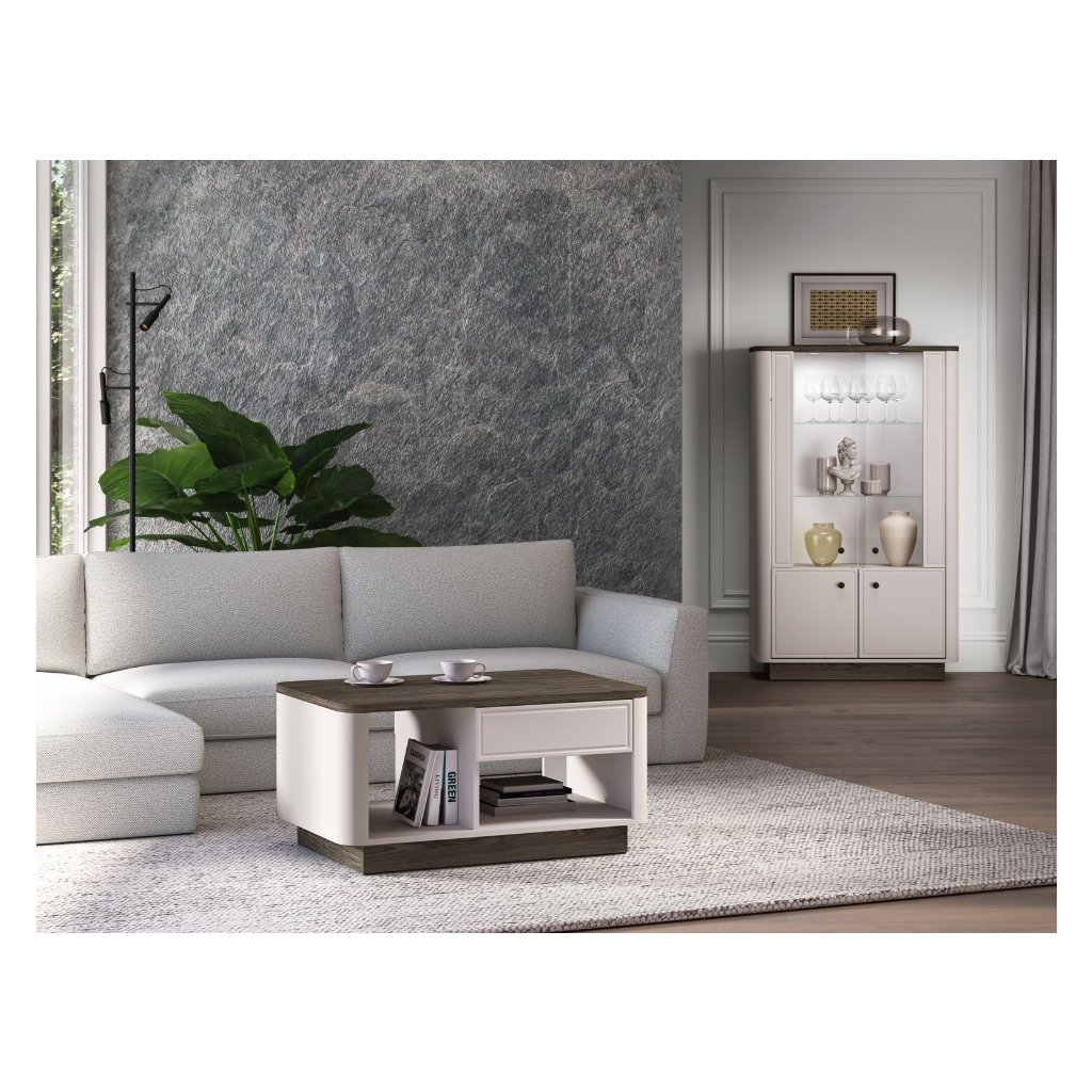 Objevte nábytek OLIVAVI , který kombinuje eleganci, styl a funkčnost. Tato kolekce je ideální do obývacích pokojů , přičemž její design okamžitě zaujme jemně zaoblenými přechody mezi korpusem a čely nábytku . Kontrastní kombinace dekorů klasický kašmírový a tmavě tónovaný dub Windmill dodávají nábytku moderní a luxusní vzhled . Vkusné kovové úchyty přidávají nábytku eleganci a sofistikovanost. S nábytkem získáte do svého interiéru noblesu, stylovost a vysokou kvalitu , která pozvedne každý prostor. Konferenční stolek OLIVAVI 06 je prostorný se zásuvkou a policí.