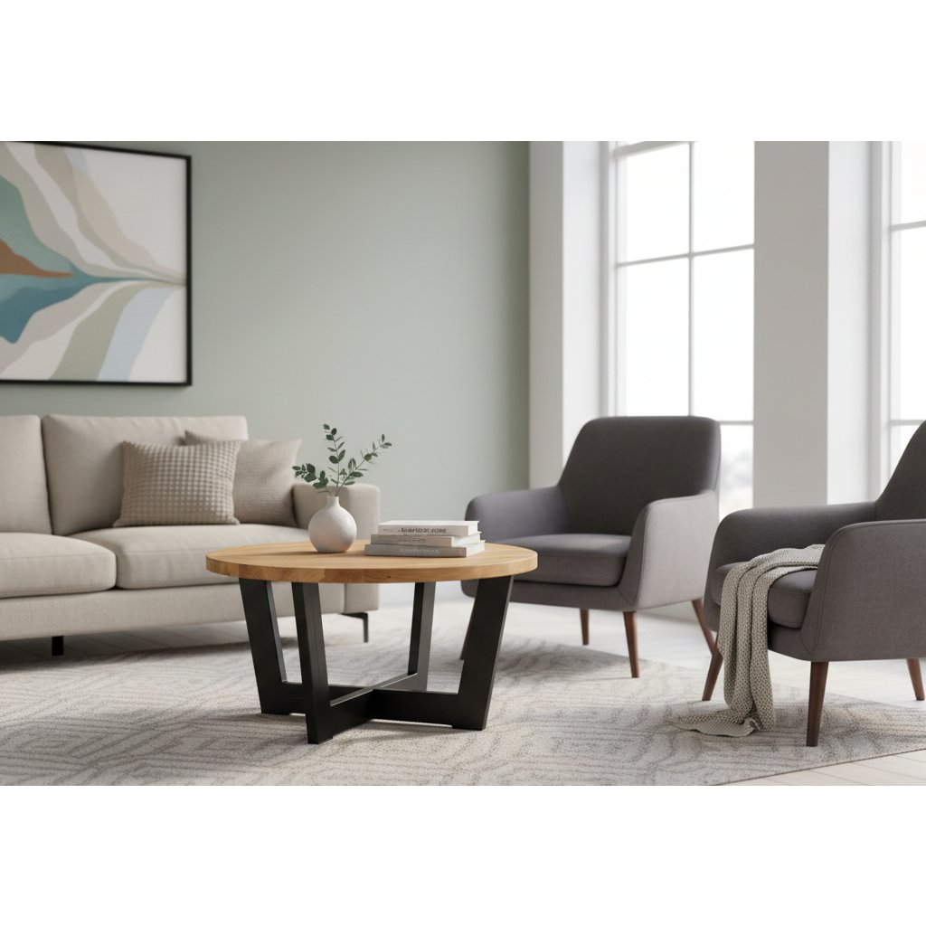 Moderní kulatý konferenční stůl CONO B | dub sestává z kvalitní kovové konstrukce a dřevěné desky. Konferenční stůl CONO B |dub je tak velmi stabilní a vhodný do každého moderního obývacího pokoje.
