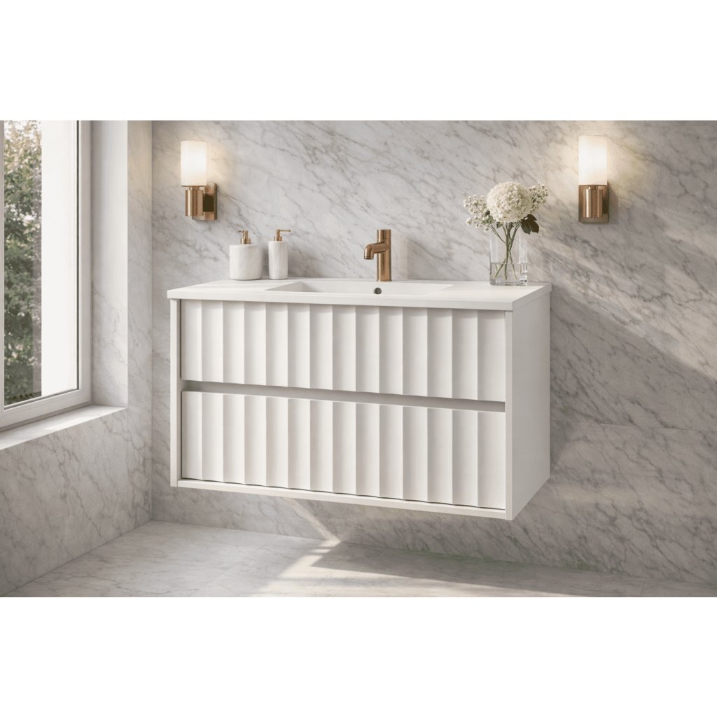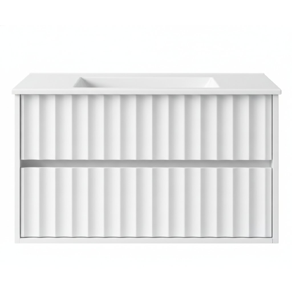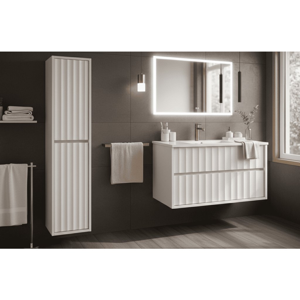 Skříňka pod umyvadlo NOA v šířce 80 cm je ideálním řešením pro moderní koupelny, které kladou důraz na design, praktičnost a dlouhodobou kvalitu. Díky větší šířce nabízí komfortní úložný prostor, přičemž si zachovává čisté linie, jemné vertikální frézování a elegantní vzhled typický pro kolekci NOA . Součástí skříňky je keramické umyvadlo s nadčasovým designem , dokonale sladěné s nábytkem.