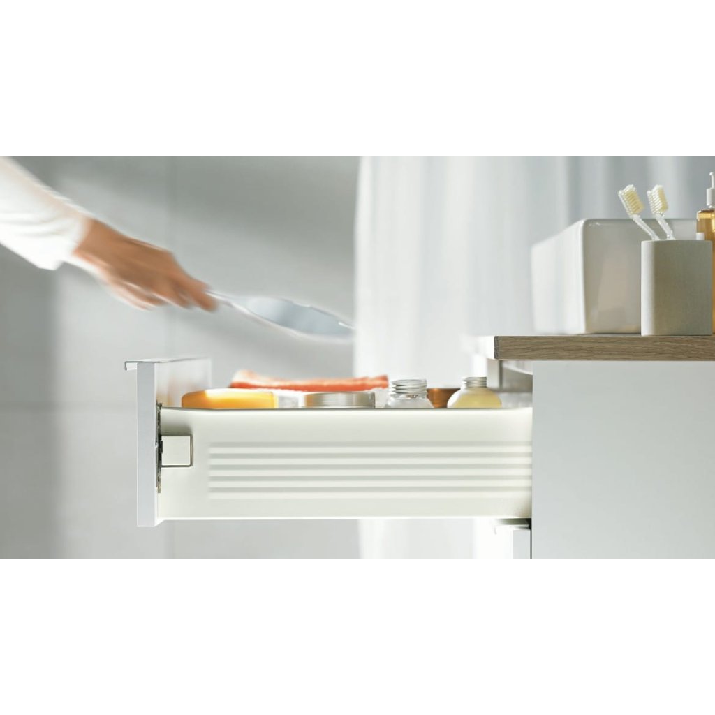 Zásuvkové skříňky mají kovové kolejnice BLUM s kovovými bočními lištami na zásuvkách, k této verzi je možnost doobjednání systému AIRTIC (tlumené dovírání).