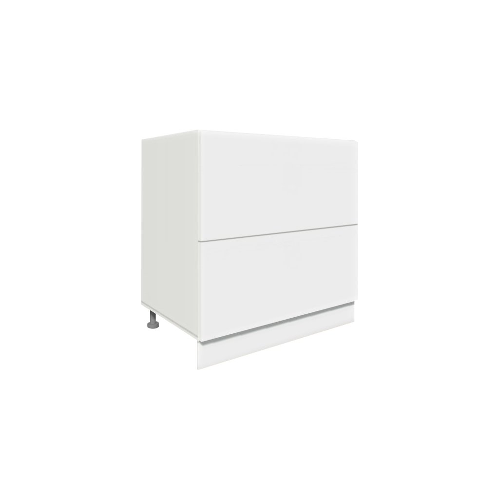 Spodní skříňka D2M/80 má 2 zásuvky. Na skříňku je použit korpus o tloušťce 18 mm, na výběr je ze 4 barev - bílá, grey, lava a dub artisan. Nohy (podstavce) jsou plastové, černé barvy, výškově nastavitelné.