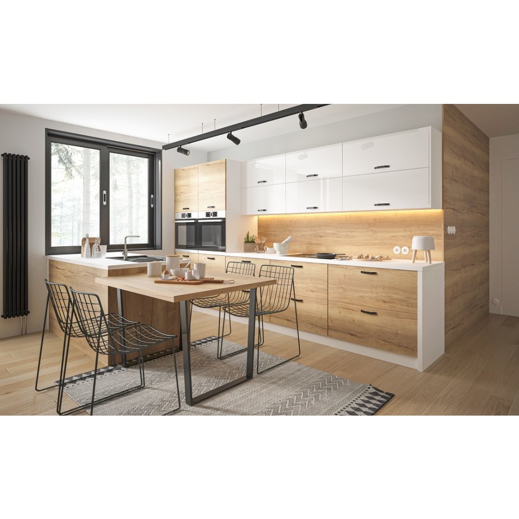 - dvířka (18 mm) jsou vyrobena z kvalitního laminátu, odolného vůči poškrábání, vlhkosti a teplu, s matnou strukturovanou povrchovou úpravou a hranami ABS