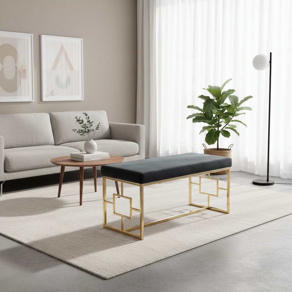 Designová lavice Noir je čalouněna černou látkou, konstrukce je ve zlaté barvě. Lavice je vhodná do moderního interiéru, díky výrazným barvám rozzáří každou místnost. Lavice je čalouněna kvalitní látkou AKSAMIT, která je odolná a příjemná na dotek.