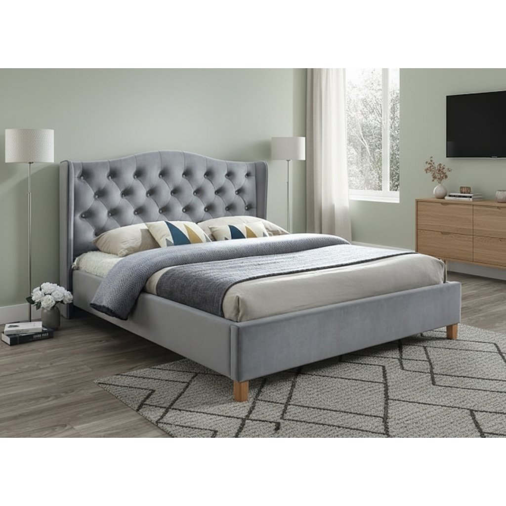 Manželská postel ASPEN VELVET | šedá 160 x 200 cm