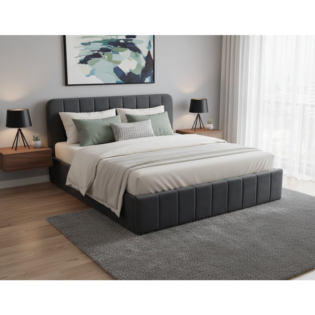 Čalouněná manželská postel AVENA v elegantním šedém provedení je ideálním řešením pro moderní ložnice, kde se pojí stylový design s maximální funkčností. Jemné vertikální prošívání na čele a rámu postele dodává posteli luxusní vzhled a zároveň vytváří příjemnou, útulnou atmosféru. Součástí postele je kvalitní výklopný lamelový rošt , který umožňuje snadný přístup do prostorného úložného prostoru pod lůžkem. Tento praktický prostor je ideální pro odkládání ložního prádla , polštářů, dek či sezónních věcí, díky čemuž udržíte ložnici vždy uklizenou a organizovanou. Robustní konstrukce postele zaručuje vysokou stabilitu a dlouhou životnost. Měkké čalounění je příjemné na dotek, odolné vůči běžnému opotřebení a nenáročné na údržbu. Vysoké čelo postele poskytuje pohodlnou oporu při čtení, sledování televize nebo ranním odpočinku. Postel AVENA je vhodná pro různé typy matrací (není součástí balení) a dostupná ve více rozměrech, aby se dokonale přizpůsobila vaší ložnici. Čalouněná postel AVENA je ideální volbou pro každého, kdo hledá praktické a zároveň designové řešení do ložnice.