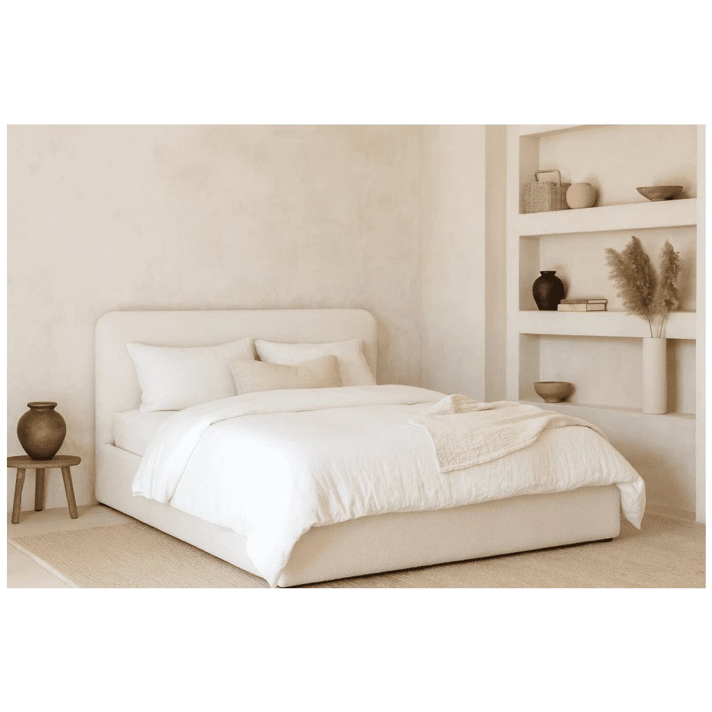 Čalouněná manželská postel TEDDY v luxusním bílém provedení z jemné bouclé látky je ztělesněním moderního designu, útulnosti a praktické funkčnosti. Trendová strukturovaná látka bouclé dodává posteli jedinečný „teddy“ efekt, který působí měkce, hřejivě a mimořádně stylově. Postel se tak stane dominantním prvkem každé moderní ložnice. Součástí postele je kvalitní výklopný lamelový rošt , který zajišťuje snadný přístup do prostorného úložného prostoru pod celou plochou lůžka. Tento prostor je ideální pro odkládání ložního prádla, polštářů, dek či sezónních věcí a pomůže vám udržet ložnici dokonale uklizenou. Matrace není součástí postele , lze ji doobjednat.