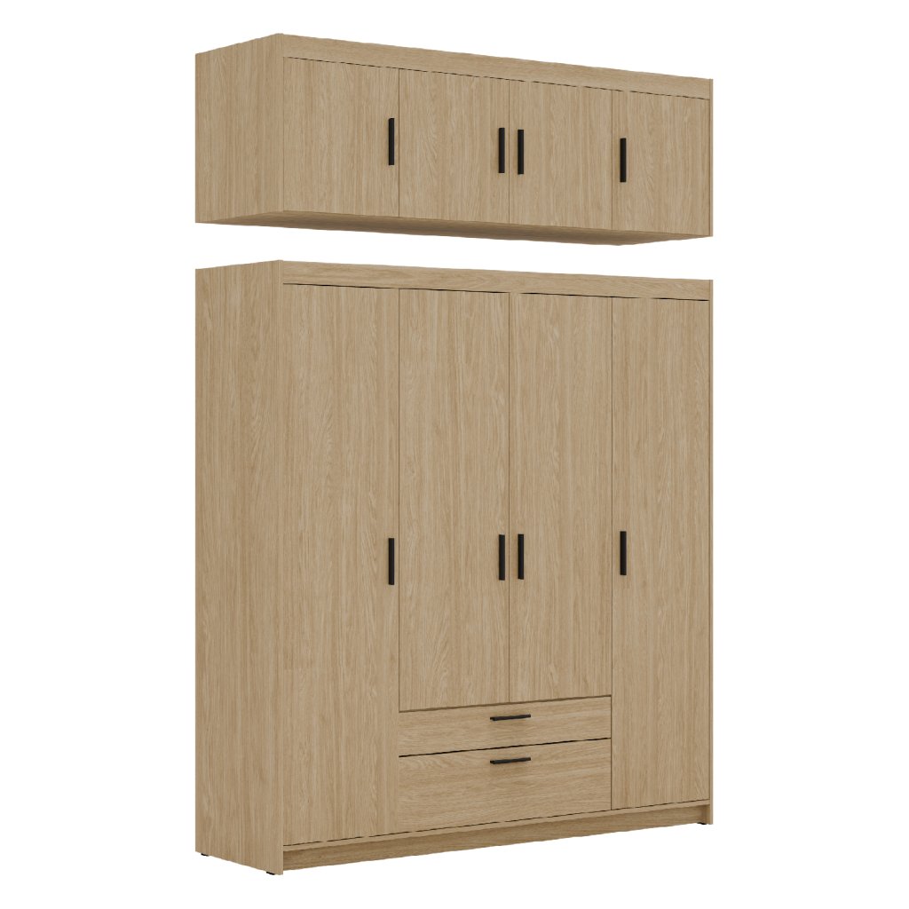 Nástavec na šatní skříň ELLEN 4D / dub olejovaný je vyroben z kvalitního lamina 15 mm, které zaručuje odolnost, dlouhou životnost i Vaši spokojenost. Praktické provedení, vyjímečné hnědé provedení, dokonalý design a atraktivní vzhled je typickým znakem nábytku. Krásné černé plastové úchyty dodávají celkový šmrnc . Nástavec je vhodný pro skříň ELLEN 4D2S / dub olejovaný, skříň ELLEN 4D2S se zrcadlem / dub olejovaný a skříň ELLEN 4D6S se zrcadlem / dub olejovaný .