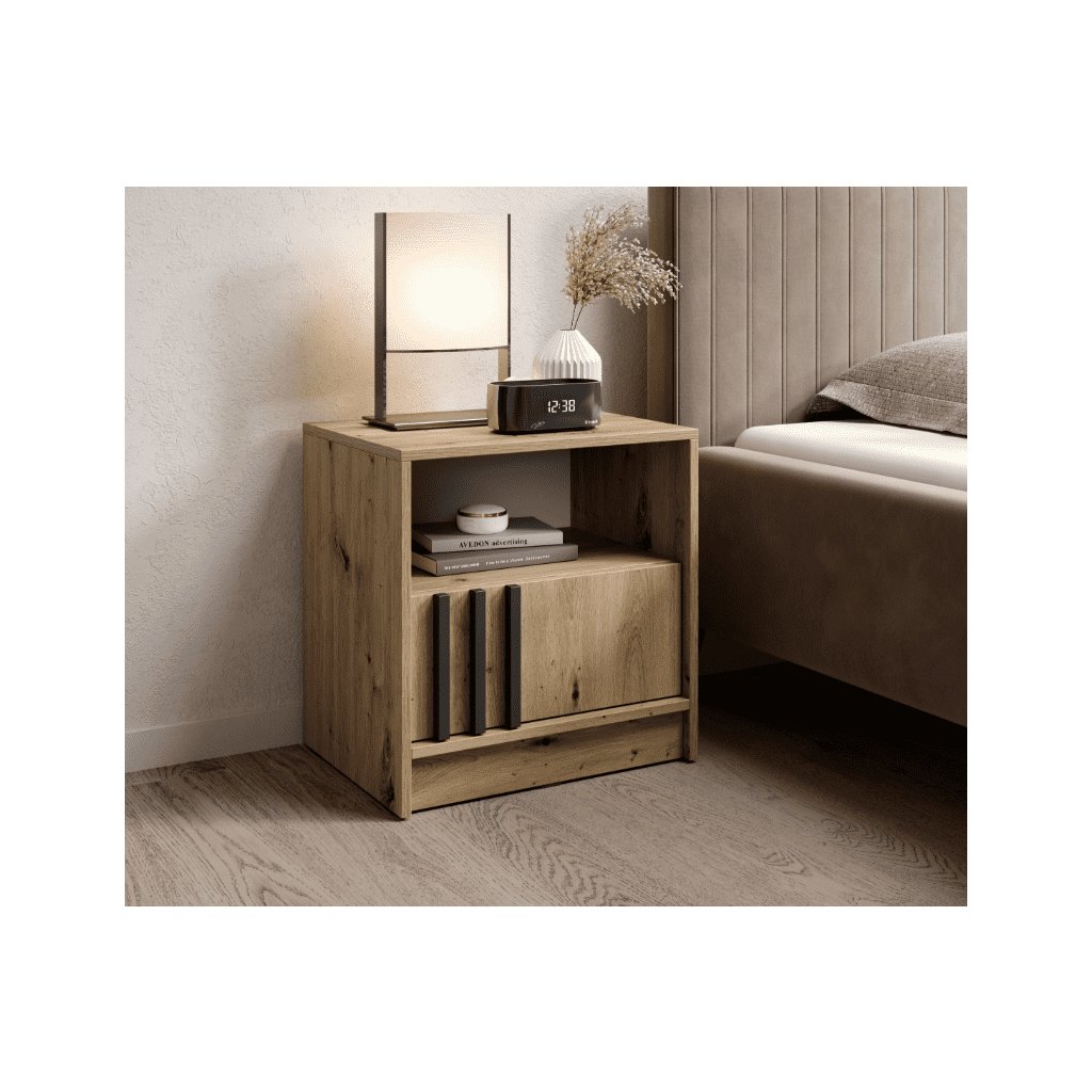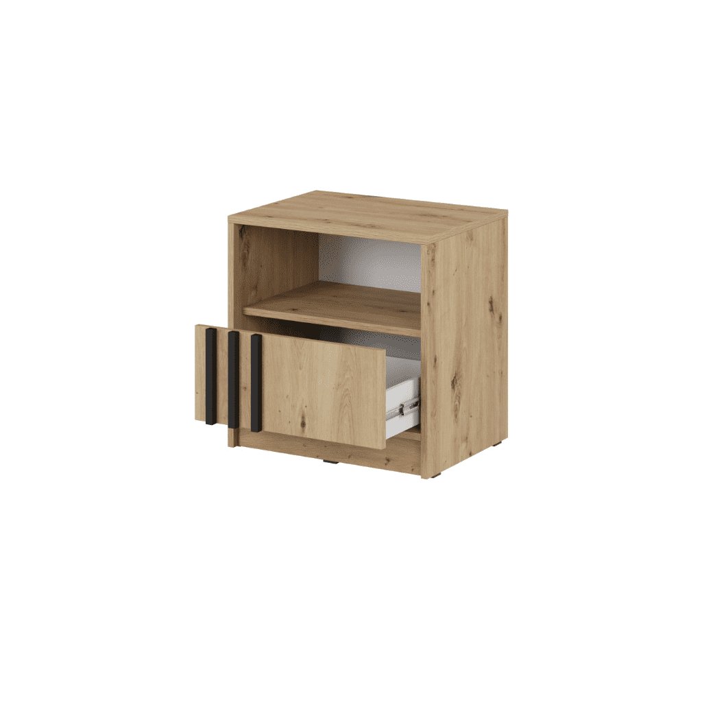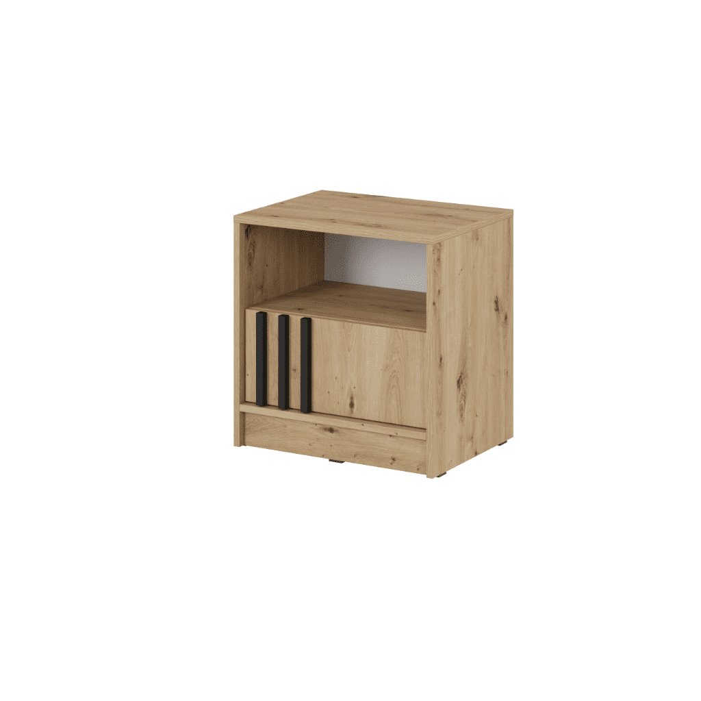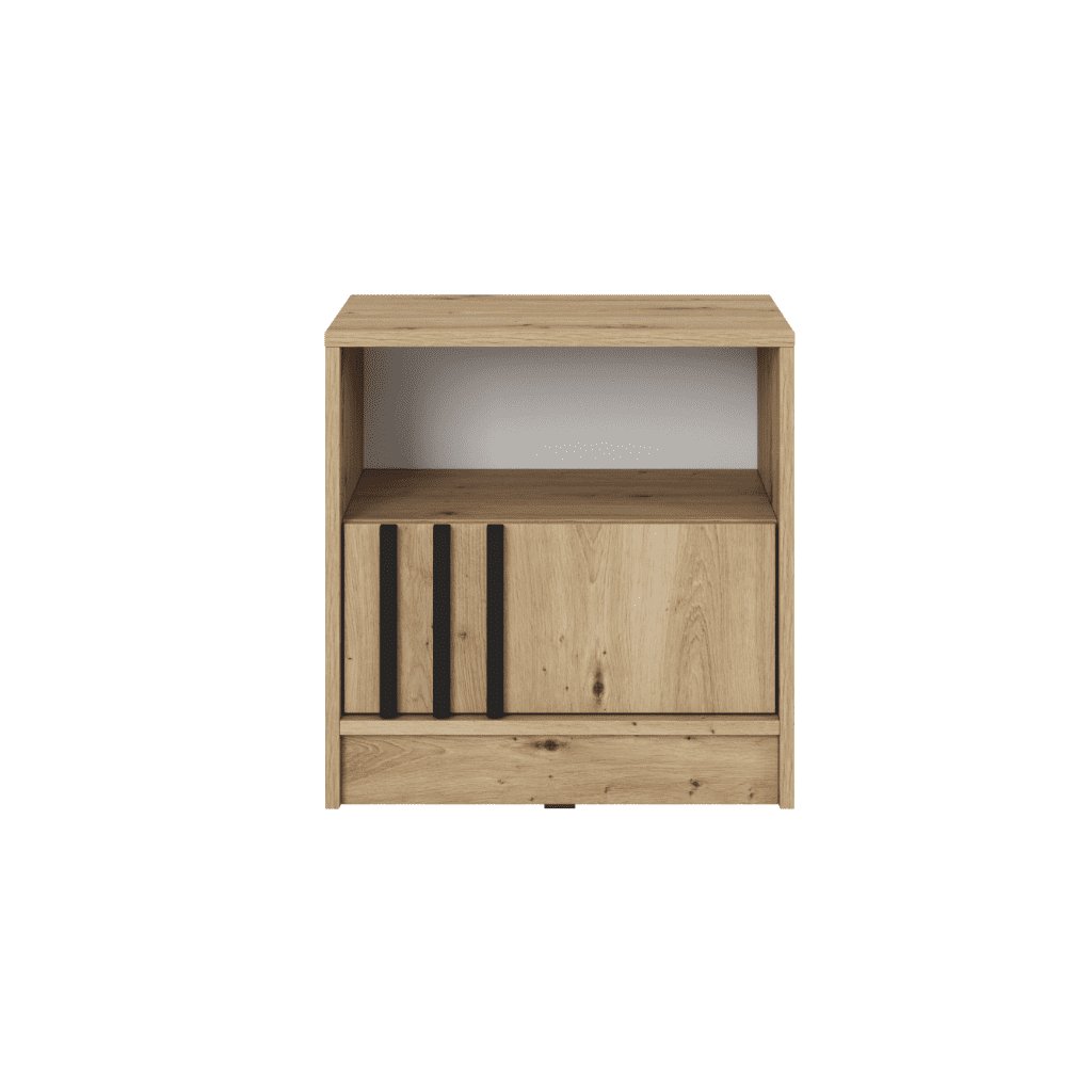 Noční stolek je nepostradatelným kouskem nábytku v každé ložnici. Slouží nejen jako úložný prostor pro knihy, brýle či mobil, ale také jako designový prvek, který dotváří celkový vzhled interiéru. Pokud hledáte moderní, minimalistický noční stolek , KELLY je tou správnou volbou . Stolek má jednu zásuvku a otevřenou polici, při každodenním používání oceníte ABS hrany. Noční stolek doplňují nenápadné černé úchyty a oživují ji lamely.