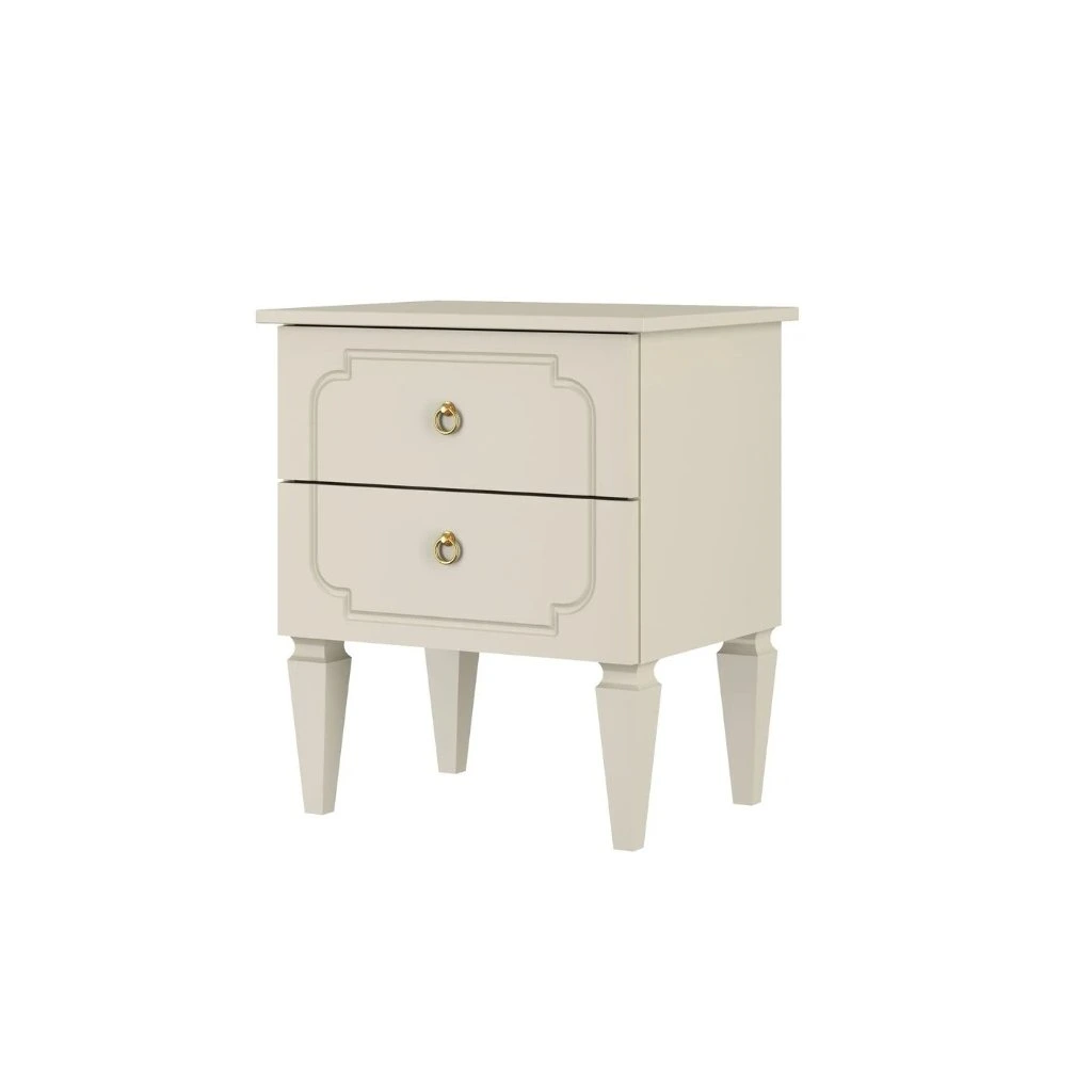 V tomto případě opravdu platí, že v jednoduchosti je krása. Stylová kolekce ROYAL je navržena tak, aby skvěle zapadla do dívčích i chlapeckých pokojů. Jemné a čisté linie oživí nenápadné zlaté úchyty. Použité kvalitní materiály jsou odolné vůči poškození a vlhkosti a jsou zdravotně nezávadné. Jednoduchý, ale designový noční stolek ROYAL v barvě latte má dvě prostorné zásuvky. Dopřejte svému děťátku pokojíček, který působí vyváženě , kompaktně a útulně zároveň.