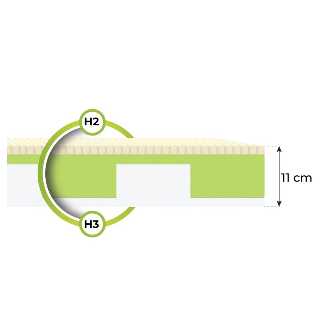 Dětská matrace CORATO Aloe je kvalitní matrace se 7-zónami tvrdosti, je to nejvyšší kvalita pro nejnáročnější zákazníky. Je skvělým řešením pro ty, kteří hledají kombinaci pohodlí, praktičnosti a dostupné ceny. Dětská matrace Corato Aloe je oboustranná, má tvrdost H2 což je středně měkká matrace a tvrdost H3, což je středně tvrdá matrace. Dopřejte si kvalitní odpočinek a probouzejte se každé ráno svěží a plní energie!