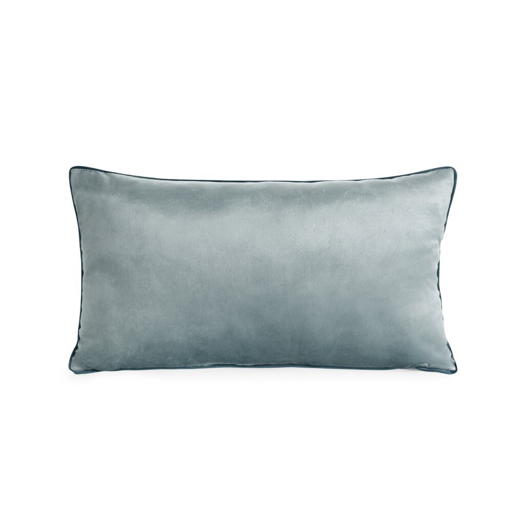 Sametové povlečení na polštář s výplní zdobené ozdobným lemováním. šířka: 30 cm, délka: 50 cm, barva: mořská, hmotnost: 220 GSM, složení: Materiál: 100% polyester
