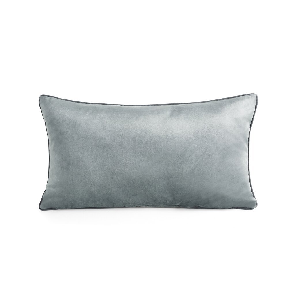Sametové povlečení na polštář s výplní zdobené ozdobným lemováním. šířka: 30 cm, délka: 50 cm, barva: stříbrná, hmotnost: 220 GSM, složení: Materiál: 100% polyester