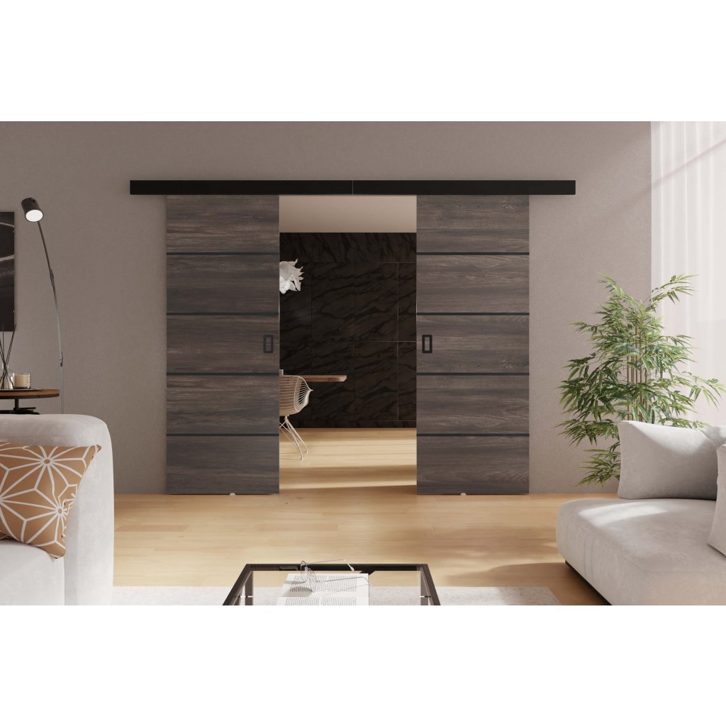 Dvoukřídlé posuvné dveře WERDI DUO PLUS 152 cm dají vašemu interiéru dokonalý charakter.   Posuvné dveře jistě ocení lidé, kteří chtějí, aby byl jejich byt nebo dům pohodlný a moderní . Celkový dojem dotváří o zdobné horizontální pruhy v černém nebo zlatém dubu, které si samy nalepíte z jedné strany. Z druhé strany jsou dveře bez ozdobných pruhů. Úchytky jsou dodávány v počtu 2 kusy. Vybrat si můžete z několika barevných provedení. Součástí balení dveří je také dekorační krycí lišta.