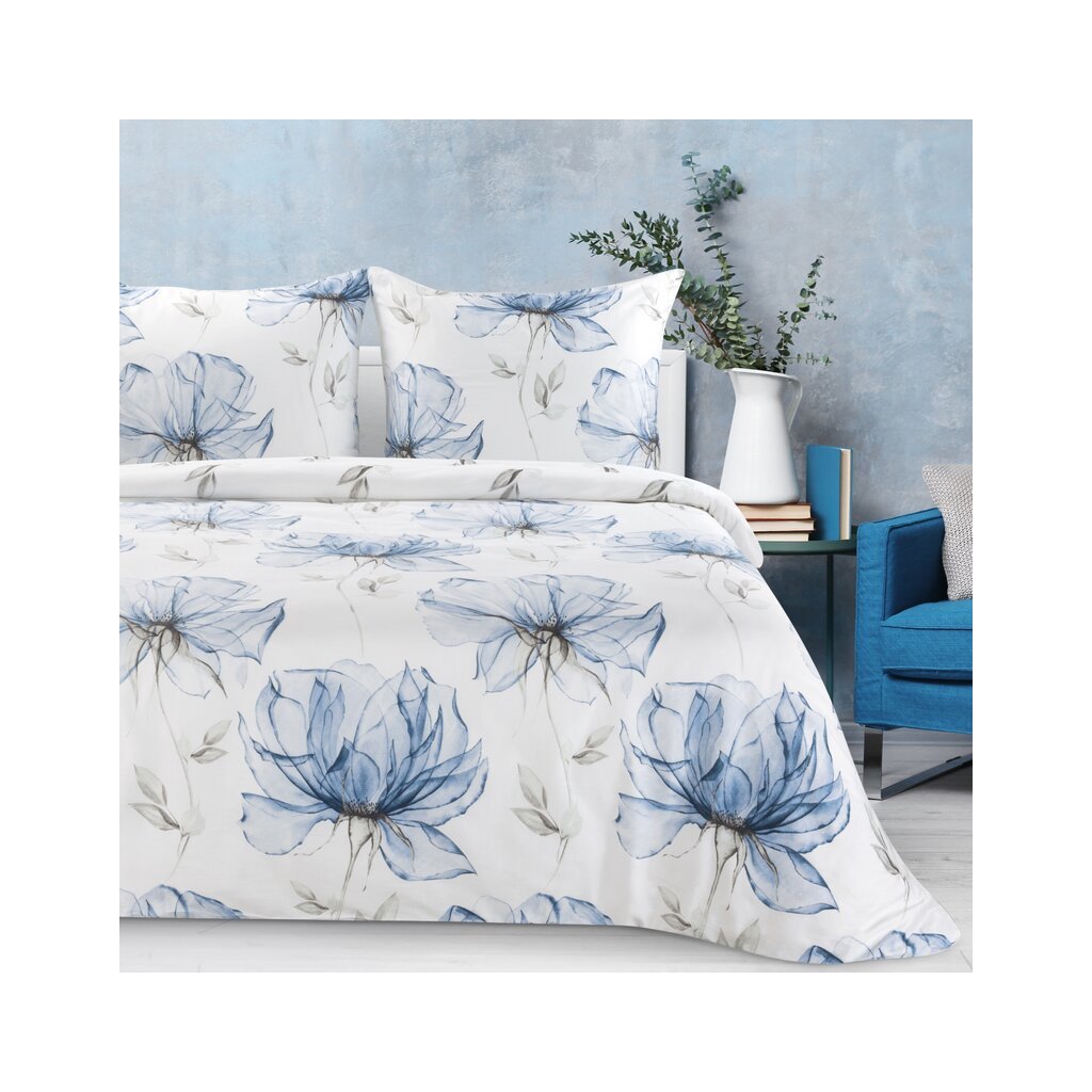 Povlečení na dvojlůžko SPRING 34 | bílá/modrá 220 x 200 cm