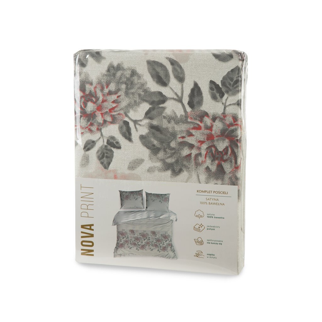 Ložní souprava z bavlněného saténu s potiskem Šířka: 140 cm, Délka: 200 cm, Barva: světle šedá, Hmotnost: 125 GSM, Složení: satén, 100% bavlna