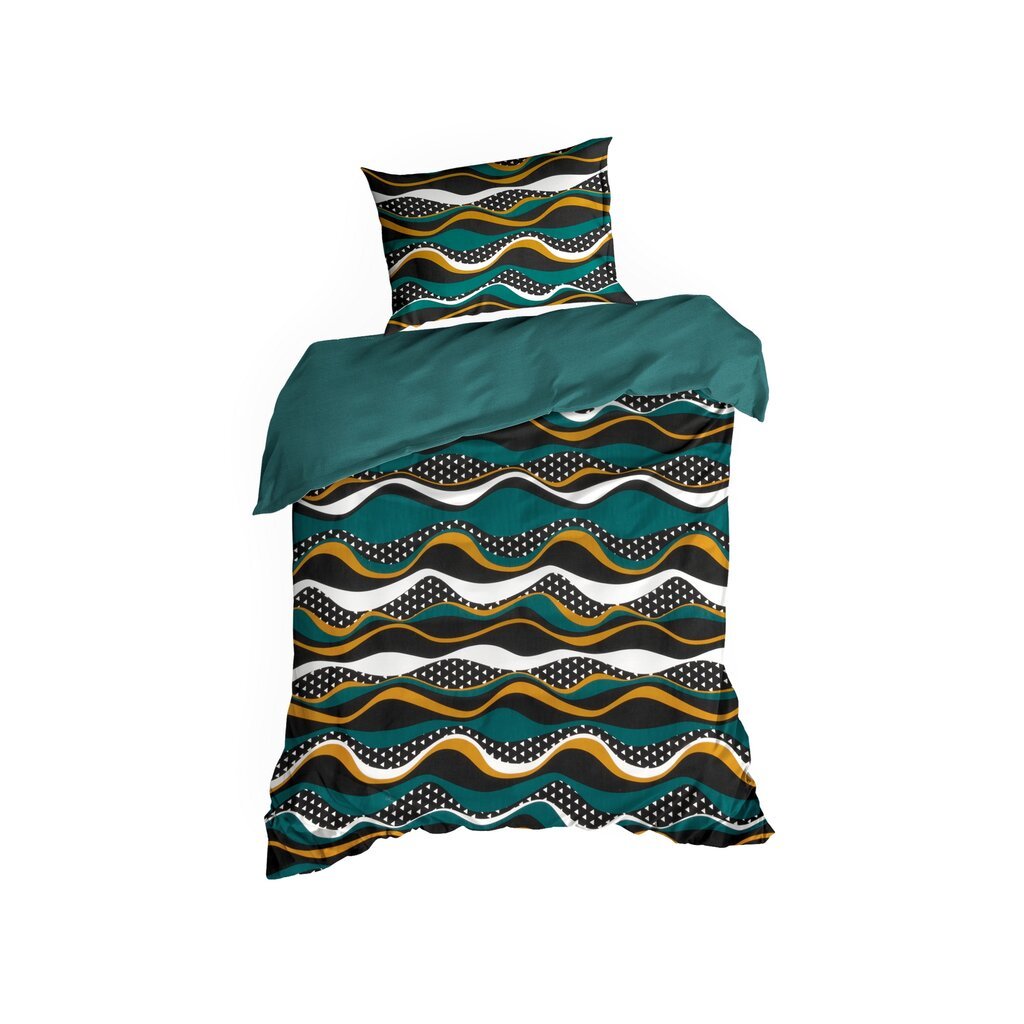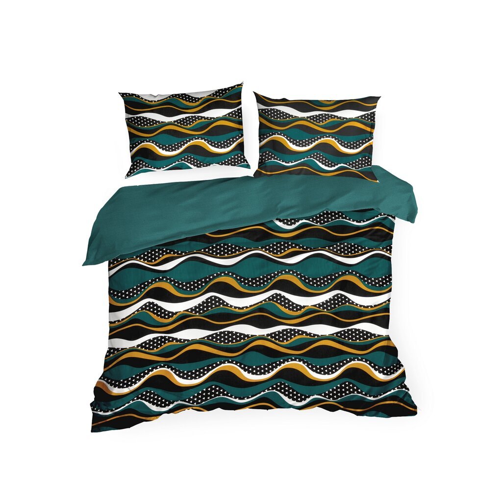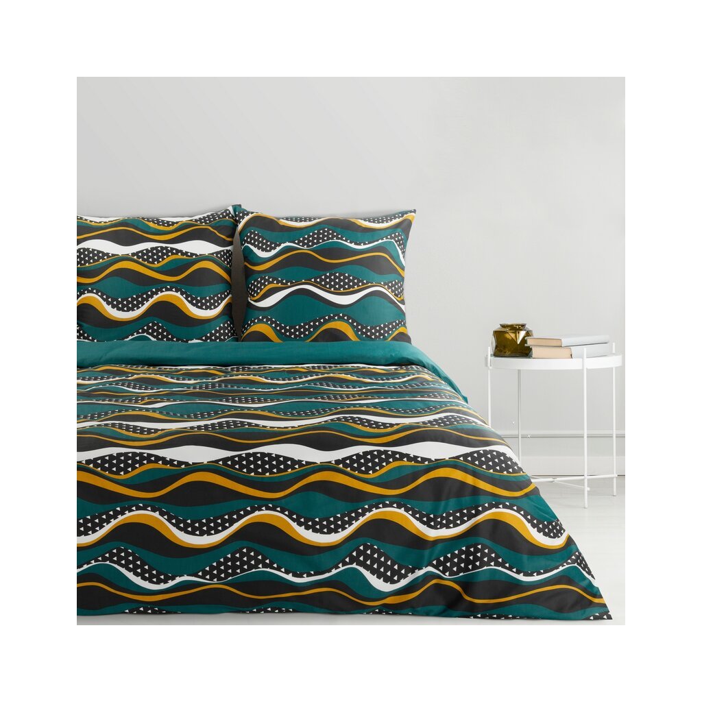 Sada ložního povlečení z bavlněného saténu s potiskem Šířka: 140 cm, Délka: 200 cm, Barva: tmavá tyrkysová, Hmotnost: 125 GSM, Složení: satén, 100% bavlna