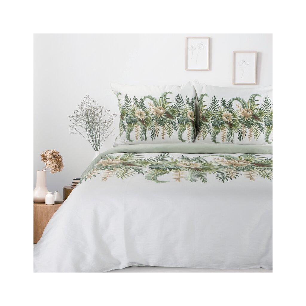 Povlečení na jednolůžko SPRING 30 | bílá/zelená 140 x 200 cm