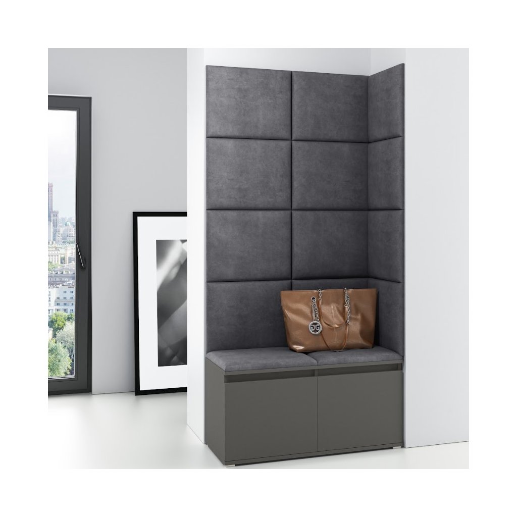 Menší sestava do předsíně AMY 2 v šedé barvě v kombinaci s barevnými čalouněnými panely oživí každou nudnou síň! Panely chrání od chladu stěny a mají tlumící funkci. Oceníte jednoduchou montáž panelů na montážní proužky Command s technologií 3M nebo na lepidlo Pattex Fix, které však nejsou součástí balení . Zařiďte si předsíň stylově a funkčně s předsíňovými sestavami AMY.