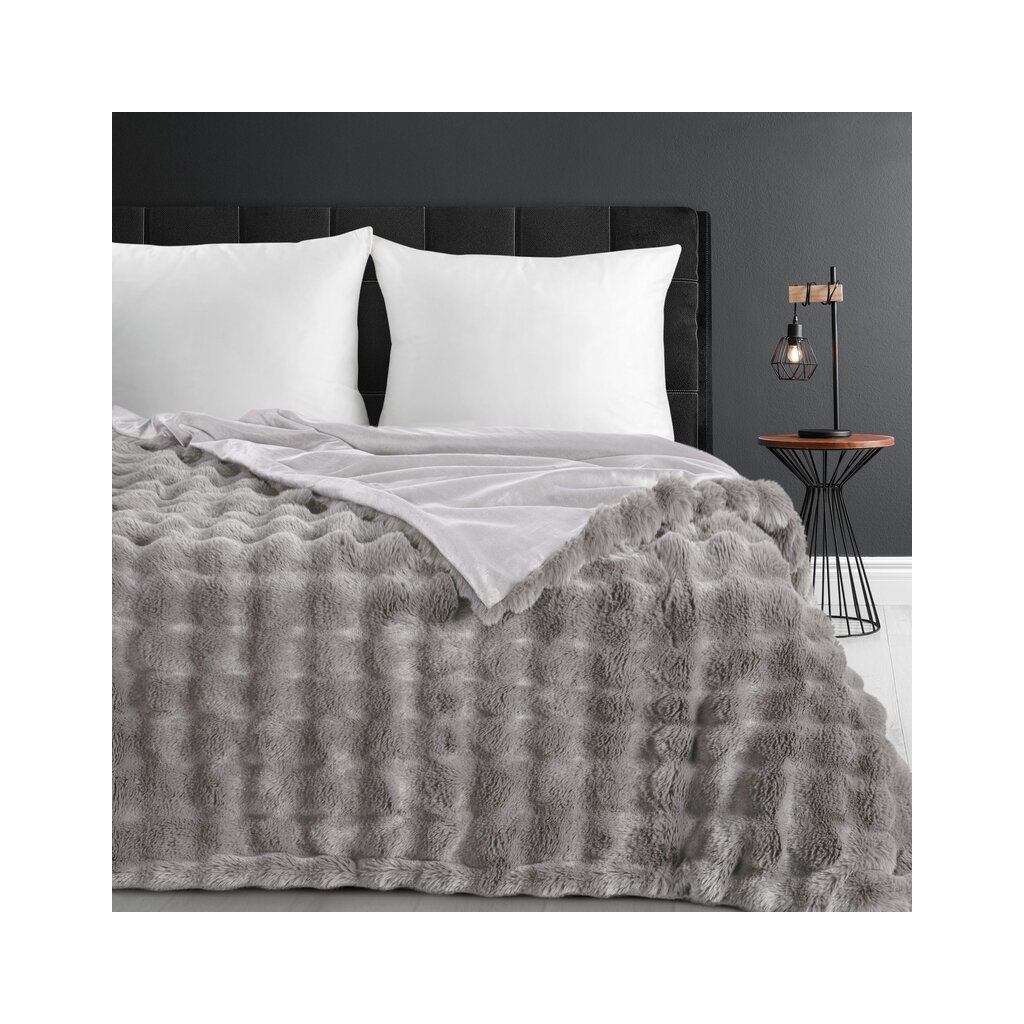Hrubá kožešinová deka s 3d efektem. šířka: 200 cm, délka: 220 cm, barva: stříbrná, hmotnost: 550 GSM, složení: Materiál: 100% polyester