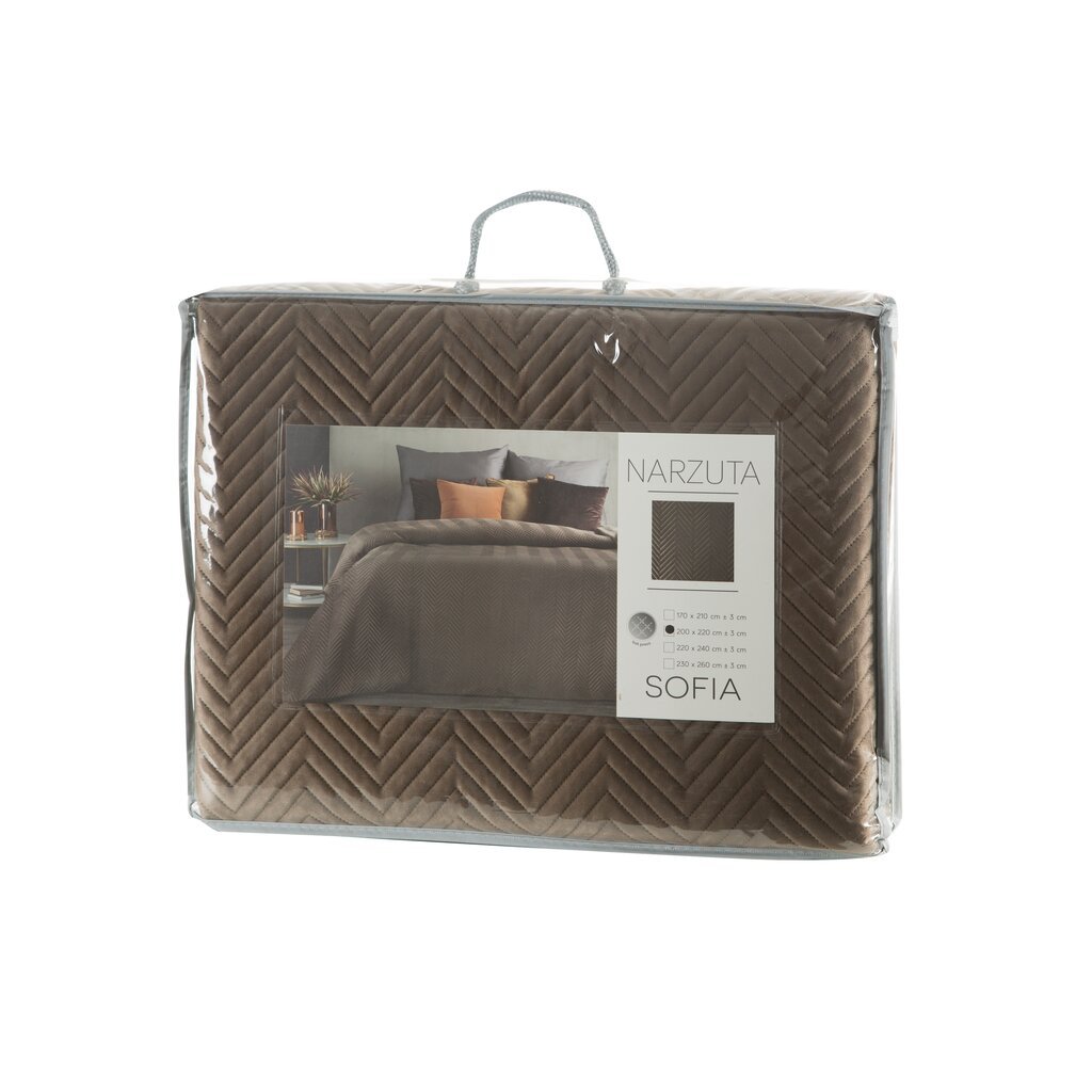Exkluzivní přehoz na postel z měkkého a na dotek příjemného sametu prošívaného velkým hustým vzorem rybí kosti. Na prošívání byla použita bezešvá metoda horkého lisování. Šířka: 70 cm, délka: 160 cm, barva: hnědá, gramáž: 250+120+65 GSM, složení: Materiál: 100% polyester.Doplňkové parametry