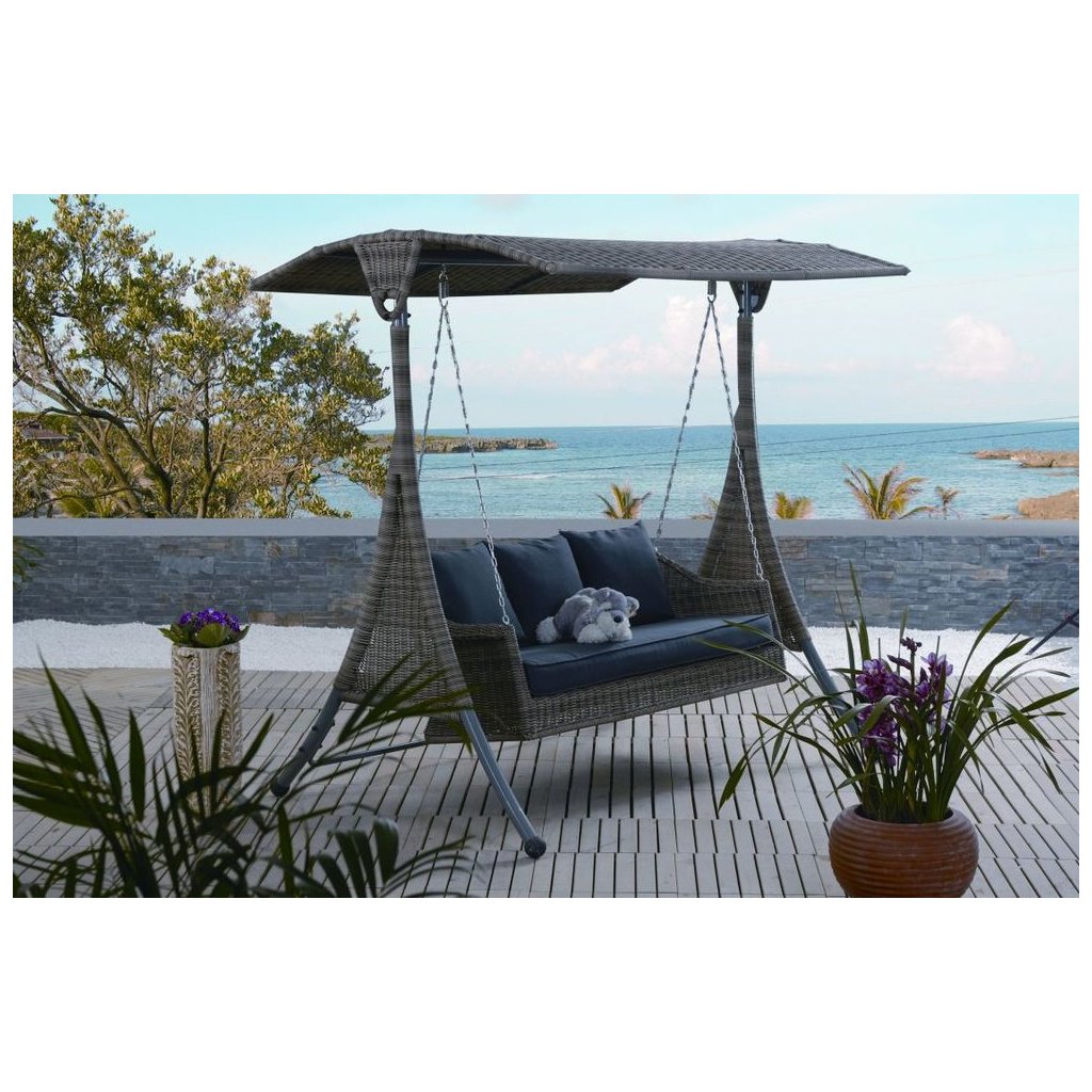 Luxusní zahradní houpačka ACAPULCO z umělého ratanu a hliníkového rámu. Přestože umělý ratan připomíná přírodní ratan, je mnohem odolnější . Obecně je pružnější a je méně pravděpodobné, že se poškodí. Zahradní nábytek z umělého ratanu se snadno udržuje a je velmi odolný vůči povětrnostním vlivům . Umělý ratanový nábytek se neloupe, nevznikají na něm nevzhledné praskliny a je barevně stálý po mnoho let.