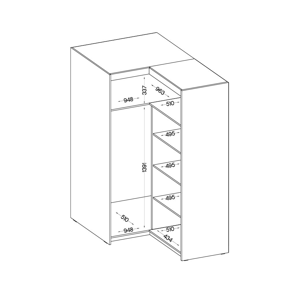 Rohová šatní skříň ELLEN 2D | dub olejovaný