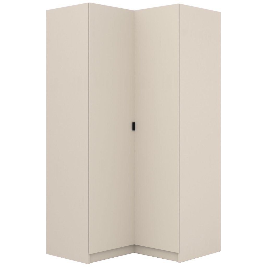 Tato rohová šatní skříň z kolekce FOX je praktickým řešením pro efektivní využití rohového prostoru v místnosti. Díky jednoduchému designu v elegantním odstínu cashmeru působí čistě a nadčasově. Skříň je vyrobena z 16 mm laminované nábytkové desky , která zajišťuje stabilitu a dlouhou životnost. Je ideálním doplňkem modulové sestavy, díky kterému si můžete vyskládat funkční a ucelený šatník dle dispozice interiéru.