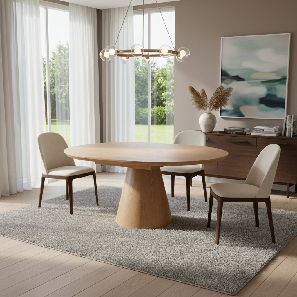 Mimořádný kulatý jídelní stůl ANGEL II v nadčasovém barevném provedení dub. Masivně řešená noha stolu zaujme už na první pohled. Díky svému neodolatelnému provedení a možnosti rozložení je vhodný nejen do moderní domácnosti, ale také do každé domácnosti kde chcete spojit luxusní vzhled s praktickým provedením. Jídelní stůl ANGEL přinese do Vaší domácnosti nejen luxus, ale také jedinečnost a eleganci.