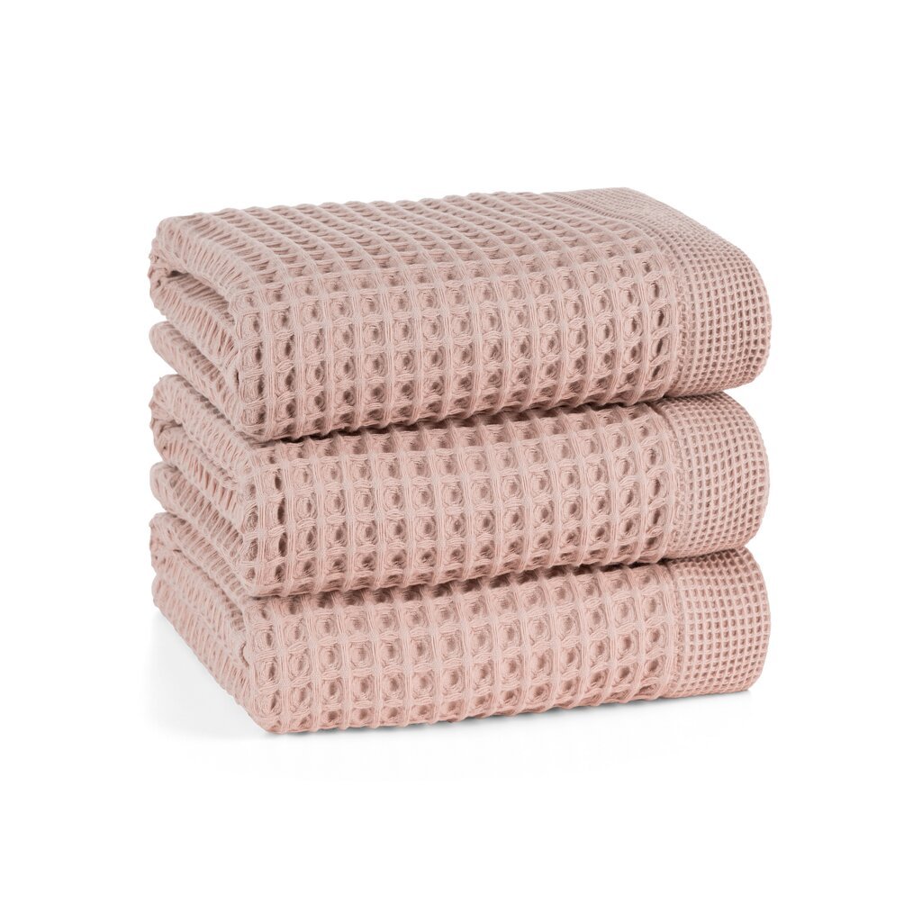 Bavlněný ručník s charakteristickou vaflovou strukturou. šířka: 50 cm, délka: 90 cm, barva: růžová, hmotnost: 400 GSM, složení: Materiál: 100% bavlna