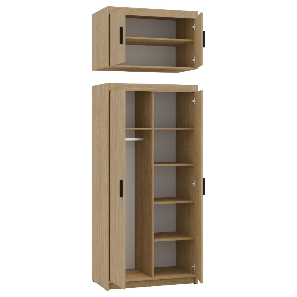 Šatní hnědá skříň 2D/dub olejovaný je vyrobena z kvalitního lamina 15 mm, které zaručuje odolnost, dlouhou životnost i Vaši spokojenost. Praktické provedení, nadčasové hnědé linie, dokonalý design a moderní vzhled je typickým znakem nábytku. Skvělé černé plastové úchyty dodávají celkový šmrnc skříni. Tak už více neváhejte a dopřejte své ložnici nádech dokonalosti v podobě šatní skříně ELLEN 2D/dub olejovaný. V případě zájmu je možné doobjednat i nástavec ke skříni ELLEN 2D .