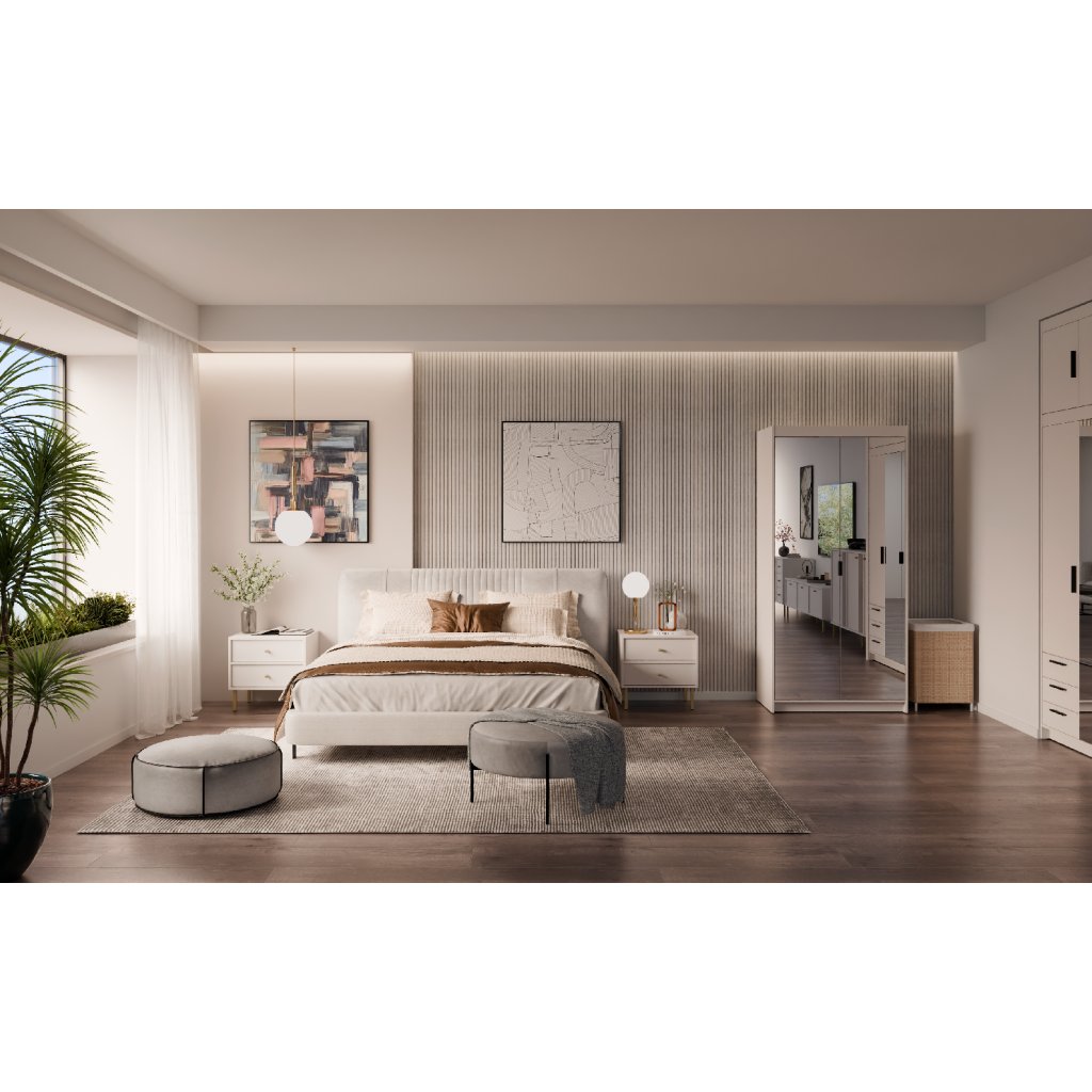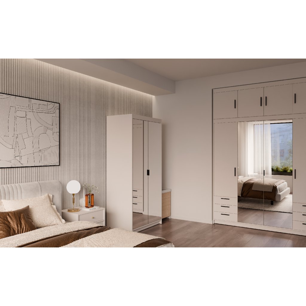 Šatní skříň ELLEN 2D se zrcadlem | pískově béžová