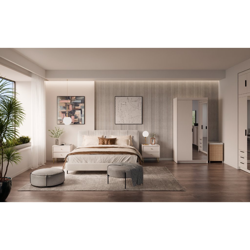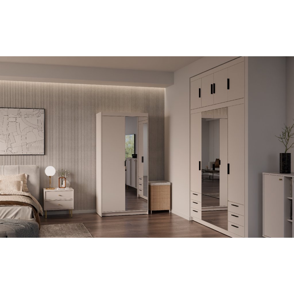 Šatní skříň ELLEN 2D1 se zrcadlem | pískově béžová